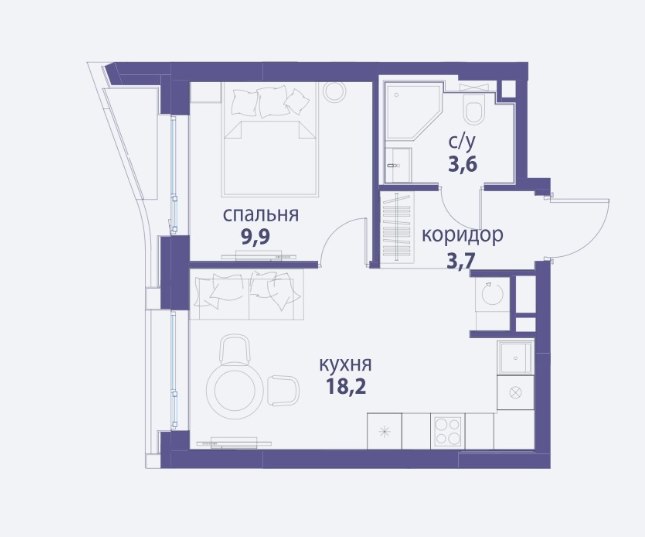 1Комната35.4 M²Общая площадь18.2 M²площадь кухникухня2этаж
