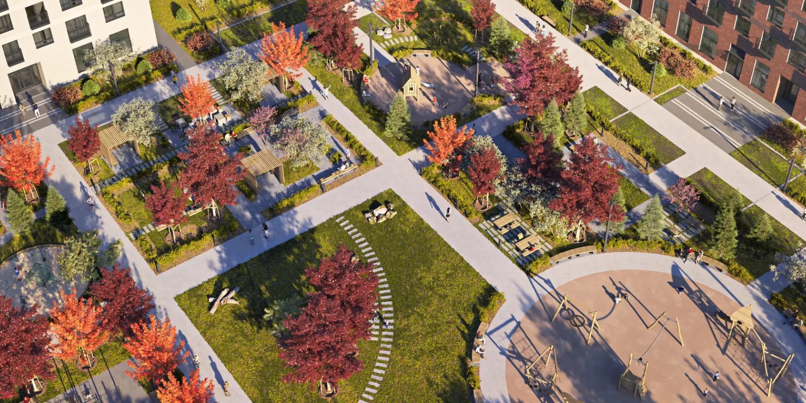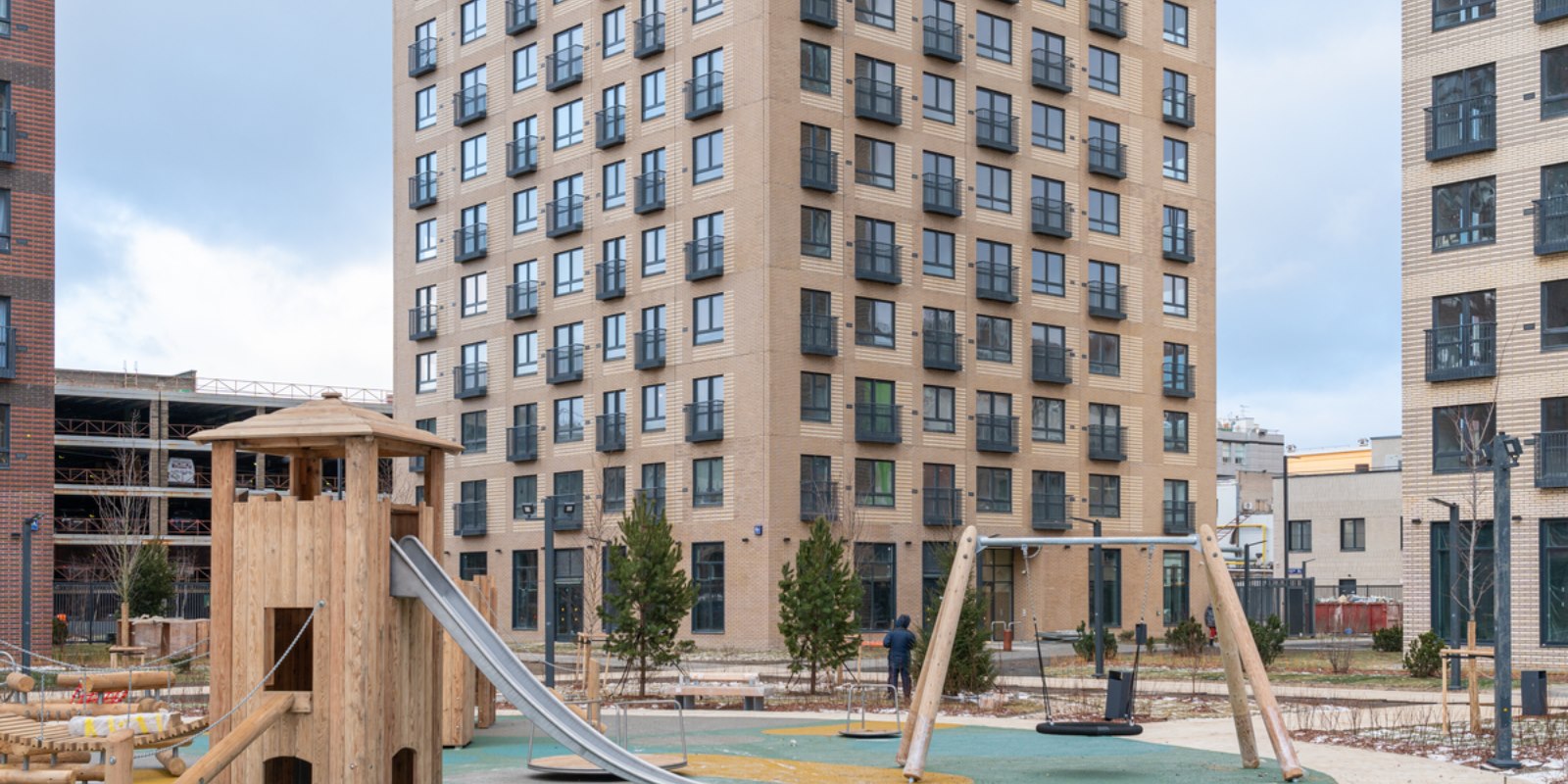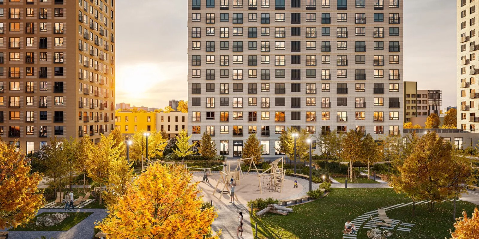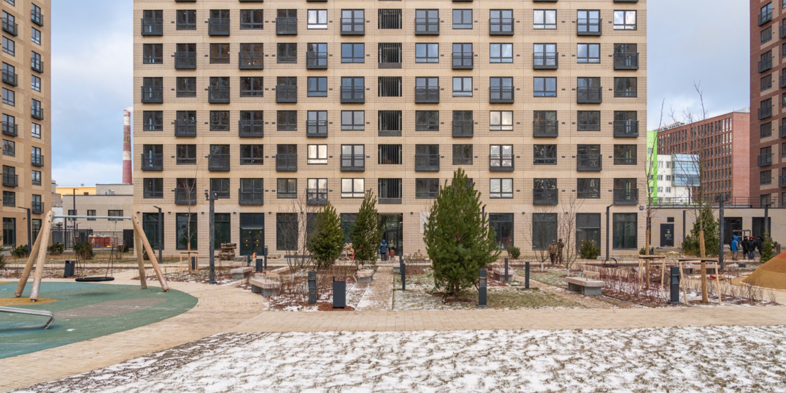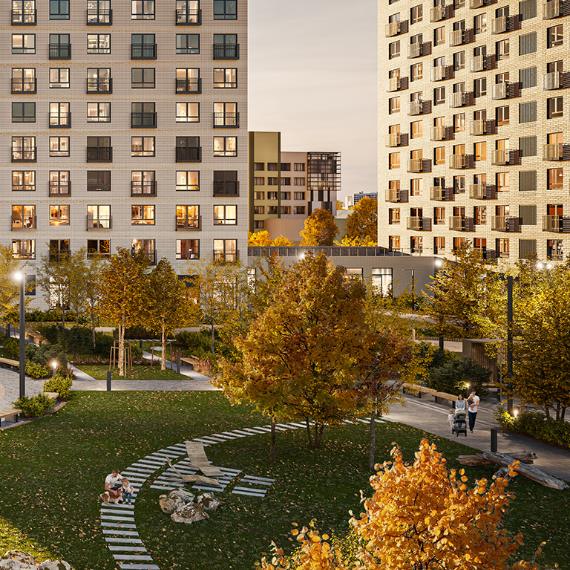 Внутри квартала появится приватный парк для жителей с детскими и спортивными площадками, где будет приятно играть и тренироваться. На территории парка предусмотрен Wi-Fi и лавочки с разъёмами для USB-зарядок. На первых этажах откроются полезные сервисы, магазины и кафе, куда можно будет спуститься за кофе в домашних тапочках.