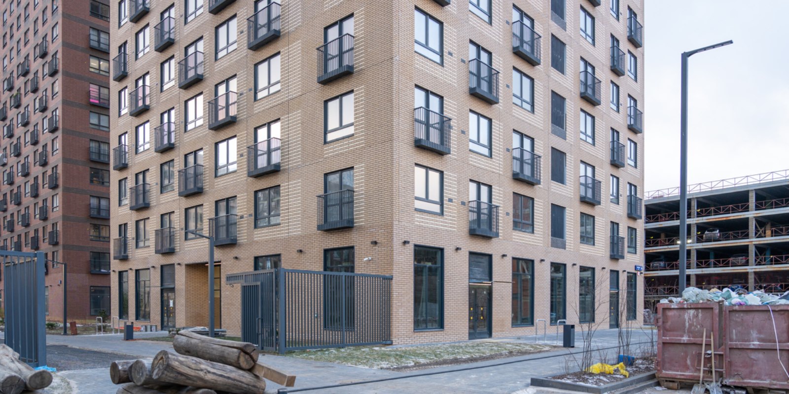На первых этажах домов — кафе, магазины и полезные сервисы.