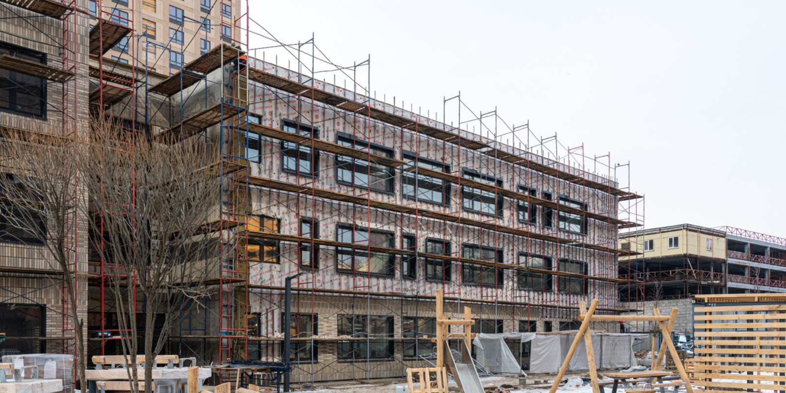 Детский сад рассчитан на 125 малышей. На детских площадках будут как навесы и качели, так и элементы для развития, экспериментов и активных игр.