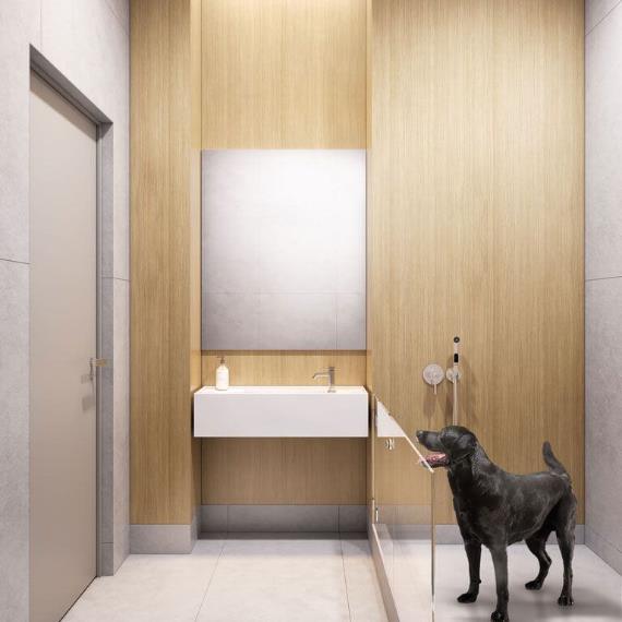 В каждом лобби будут лапомойки с душем — с ними ваша собака будет возвращаться домой уже чистой, а вы сэкономите время на уборке. С помощью гигиенического душа можно помыть только лапы или всю собаку полностью.