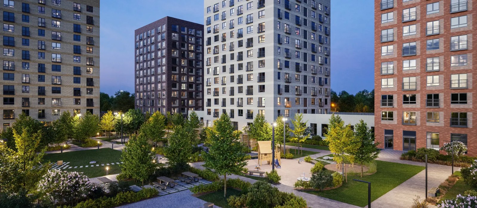 Идея уникальной архитектуры продолжается и в выборе высоты домов: в «Барклая 6» они будут с 12, 24 и 32 этажами. Переменная этажность — важный архитектурный приём, который влияет на комфорт жителей. Во дворе, окружённом домами разной высоты, нет ощущения «колодца», чувствуется простор, а в квартиры попадает больше естественного света.