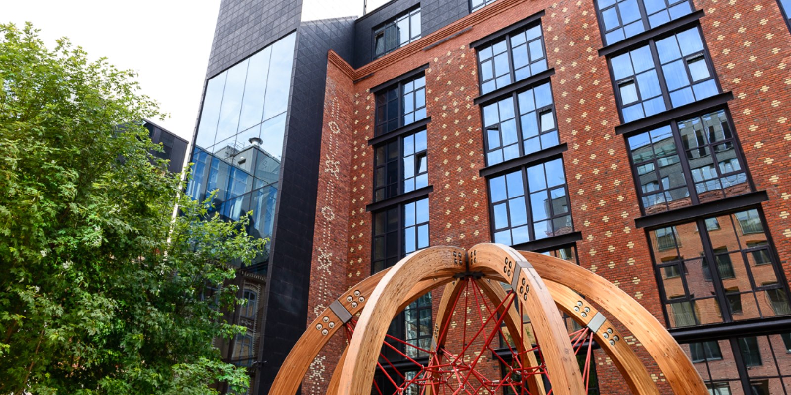 ЖК «Большевик» – лофт-комплекс малой этажности, состоящий из 3 корпусов (от 3 до 6 уровней), выполненных в едином индустриальном стиле на кирпично-монолитной технологии. Застройщик сохранил фасад из красного кирпича и реконструировал орнаментные элементы, совмещая в проекте промышленный стиль с современным архитектурным решением hi-tech.