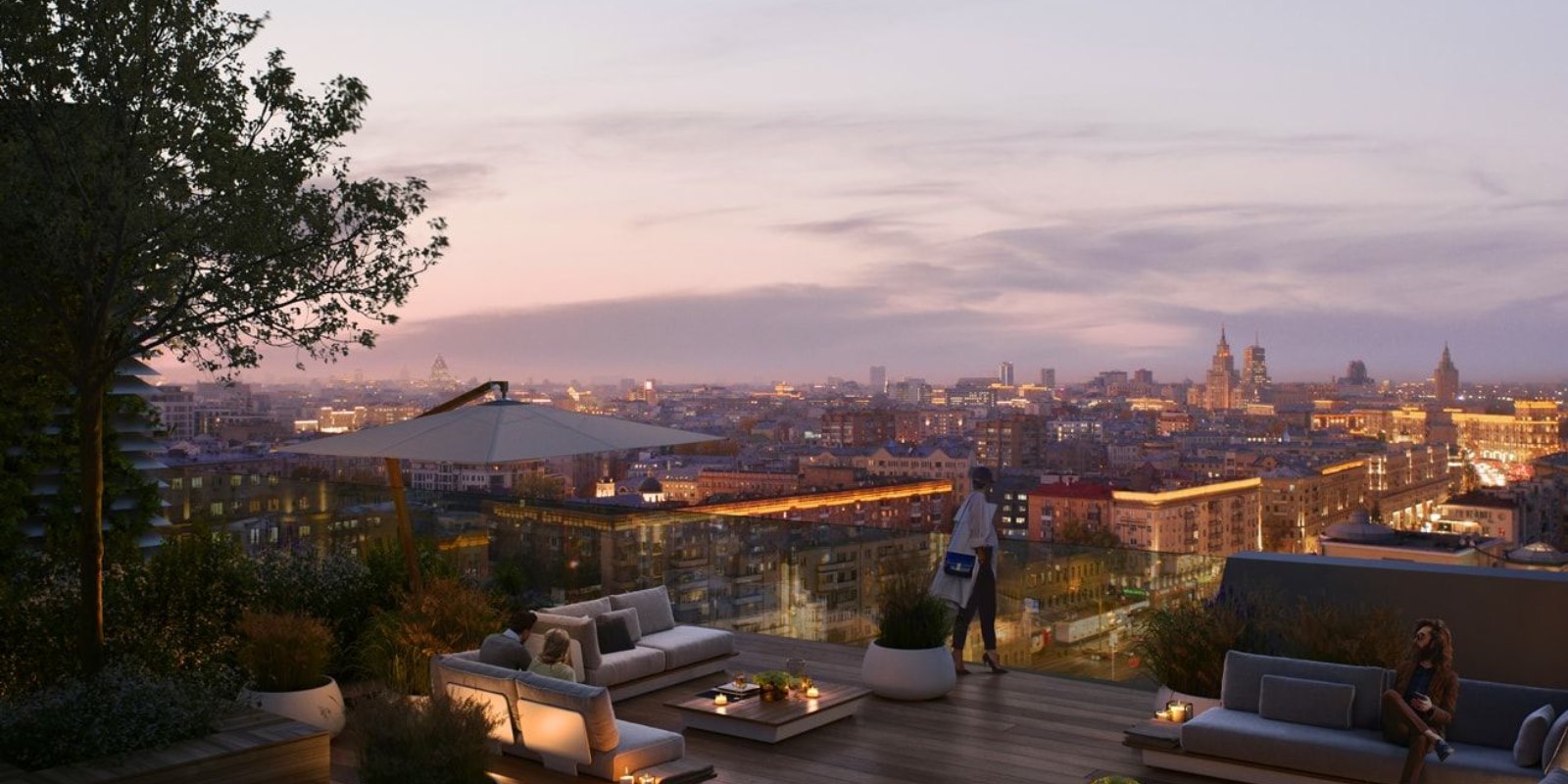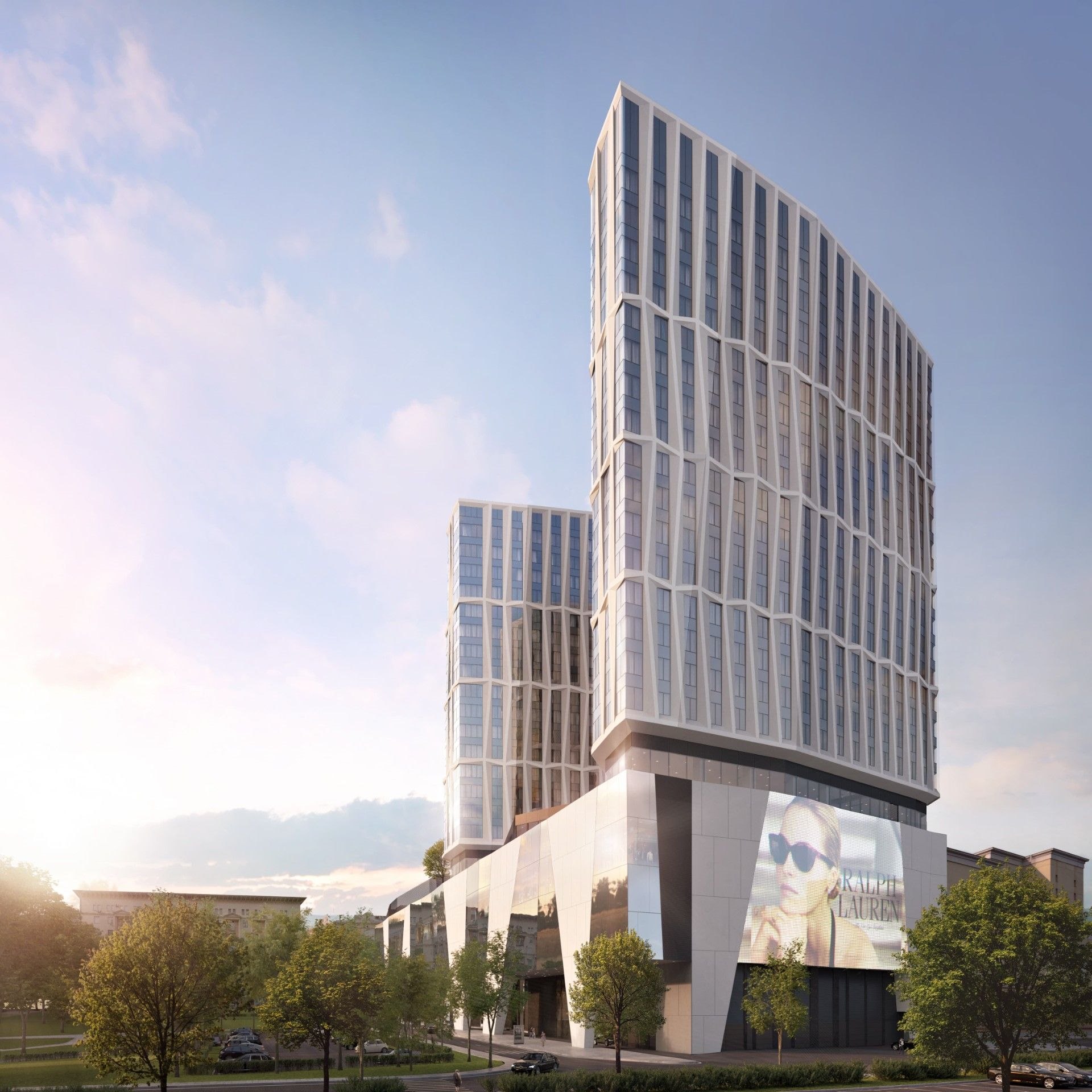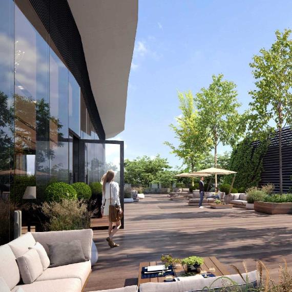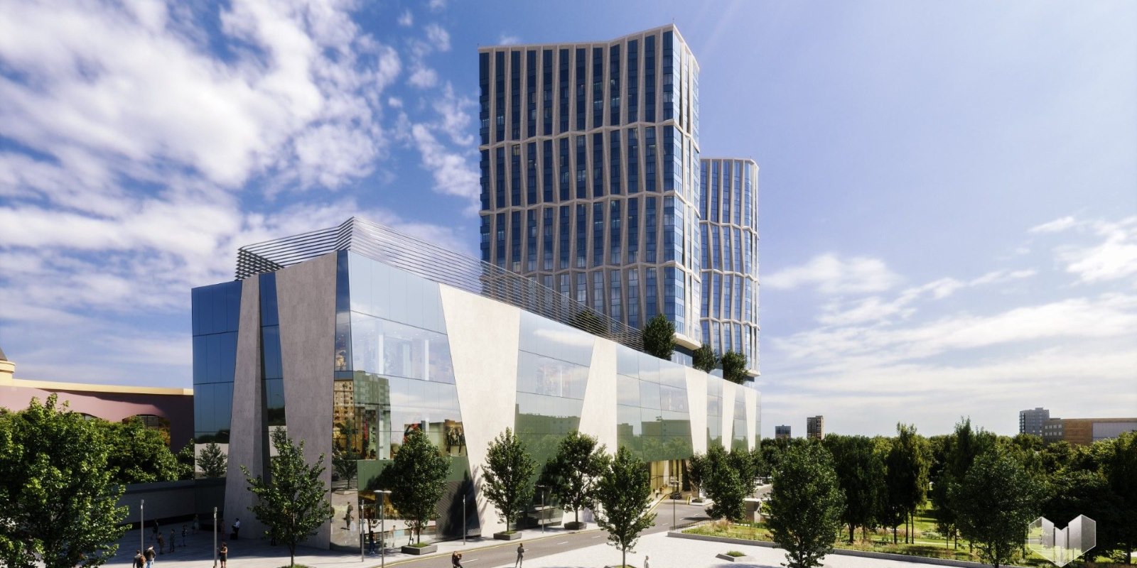 На пятом этаже будет доступен co-working для решения бизнес-задач, wellness-студия для занятий спортом, а также party-room — зона проведения мероприятий и торжеств. Помимо этого в здании будут работать гастрономические рестораны с патио, кафе, пекарни и магазины.