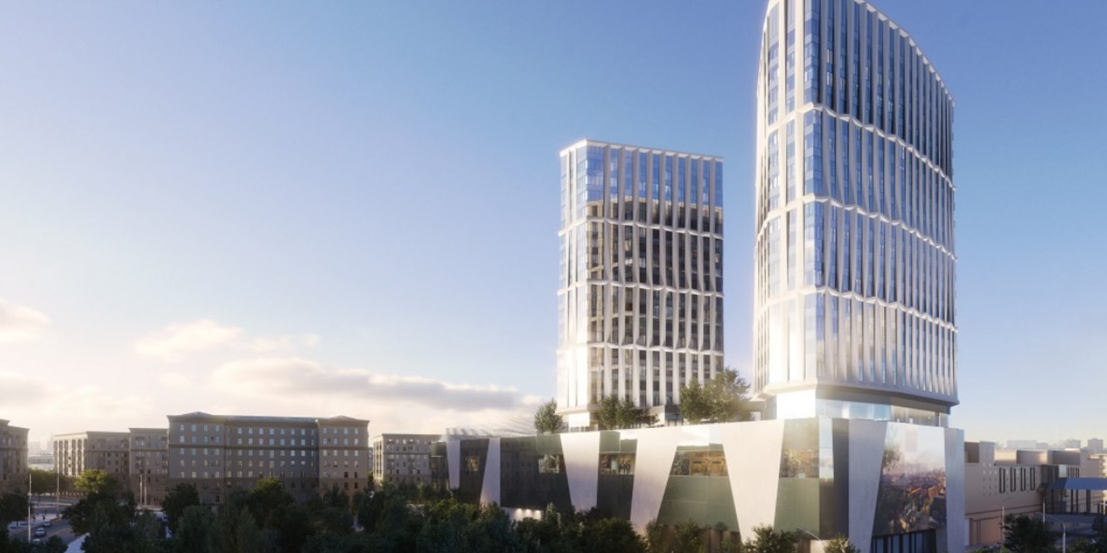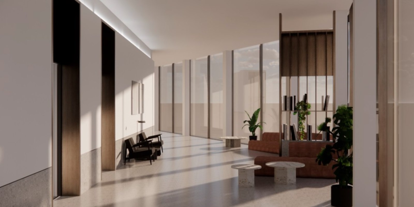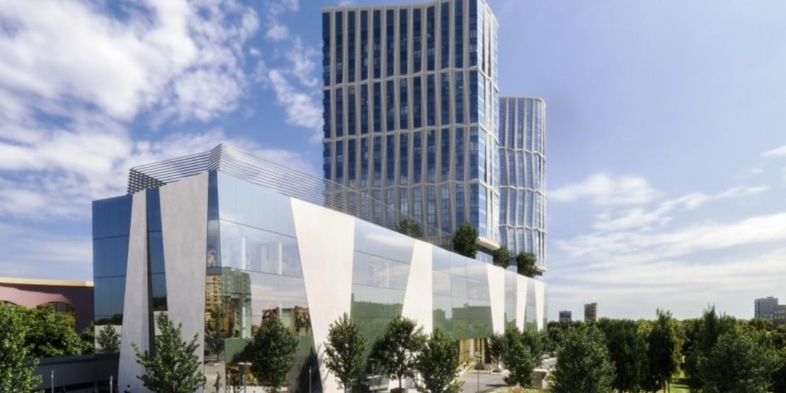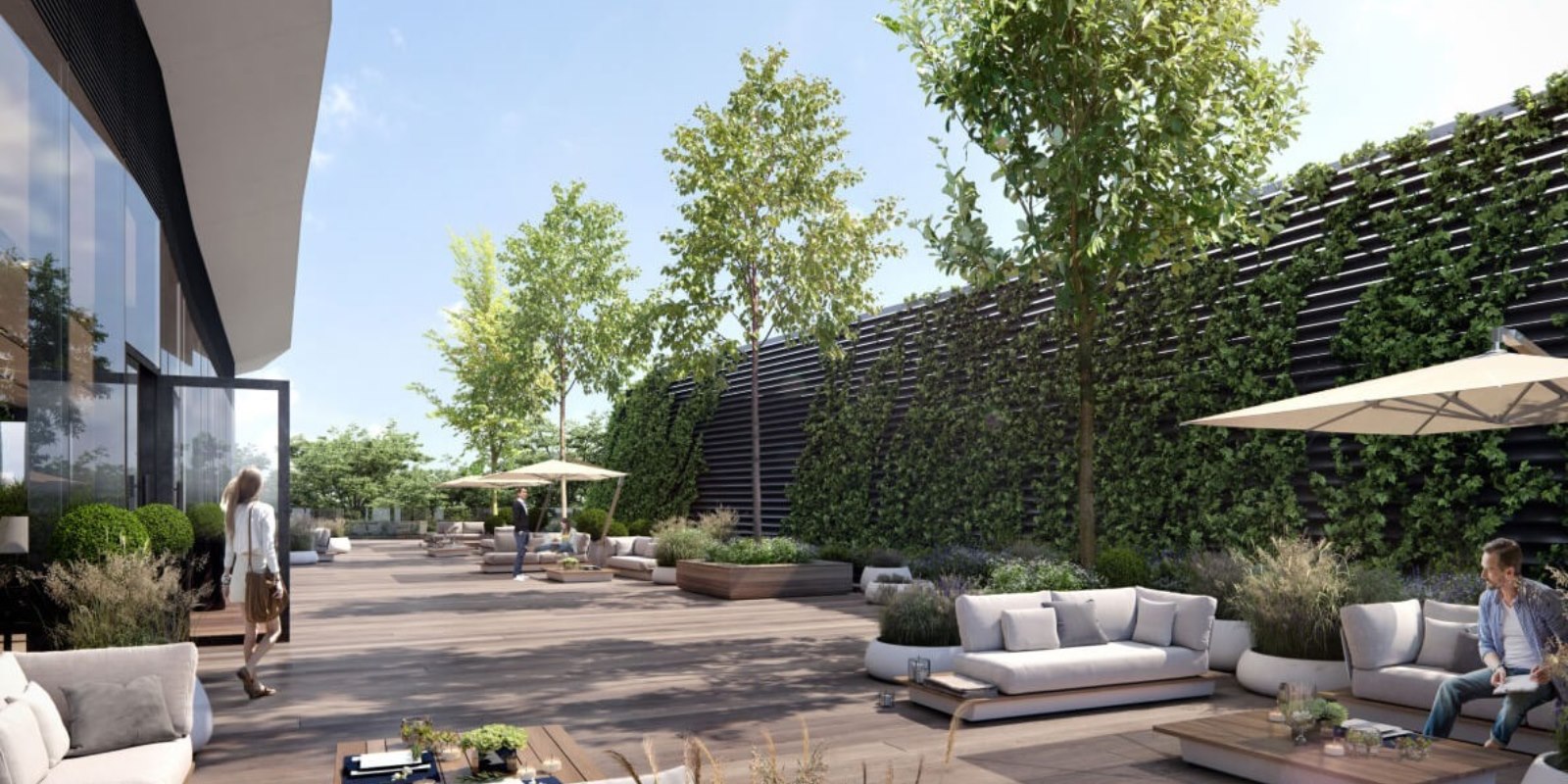 На пятом этаже будет доступен co-working для решения бизнес-задач, wellness-студия для занятий спортом, а также party-room — зона проведения мероприятий и торжеств. Помимо этого в здании будут работать гастрономические рестораны с патио, кафе, пекарни и магазины.