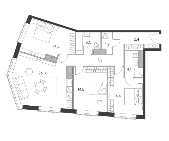 3Комнаты96.6 M²Общая площадь26 M²площадь кухникухня16этаж