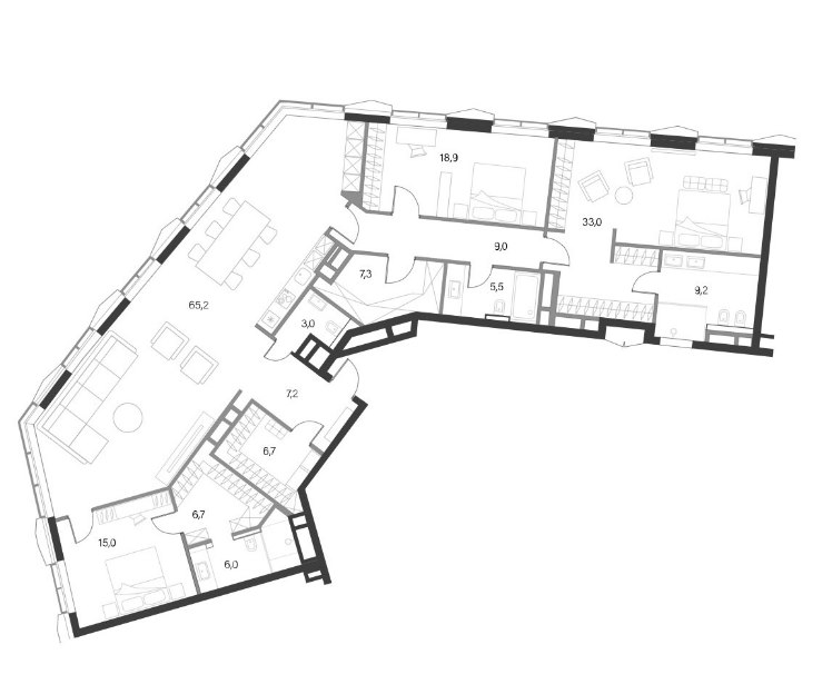 4Комнаты189 M²Общая площадь65 M²площадь кухникухня21этаж