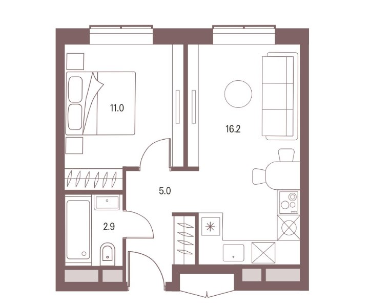 1Комната35.1 M²Общая площадь16.2 M²площадь кухникухня21этаж