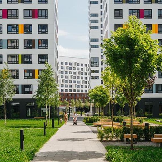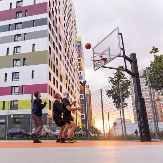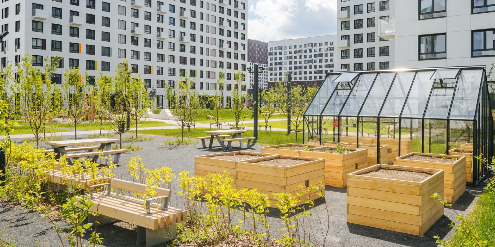Двор-парк — это приватное пространство жителей: сюда можно попасть из подъезда или через калитку, приложив магнитный ключ. Во дворах-парках тихо и уютно: здесь много зелени, нет машин, а площадки для шумных видов спорта, например баскетбола или футбола, расположены с другой стороны домов.