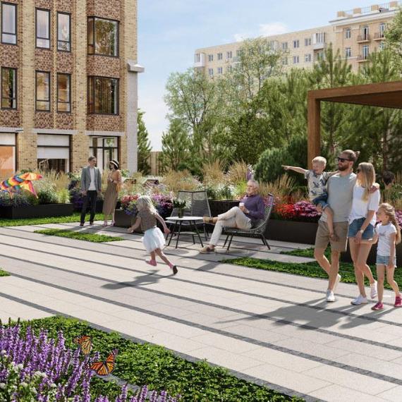 В помещениях стрит-ритейла на первом этаже запланировано открытие магазинов и кафе с самыми необходимыми в повседневной жизни товарами и услугами.