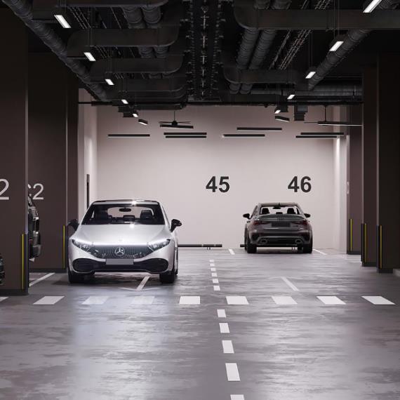 видеонаблюдение. Паркинг оснащен системой подкачки шин, а также станциями подзарядки электромобилей. Спуститься на нужный подземный этаж паркинга вы можете на лифте со своего этажа или из лобби.