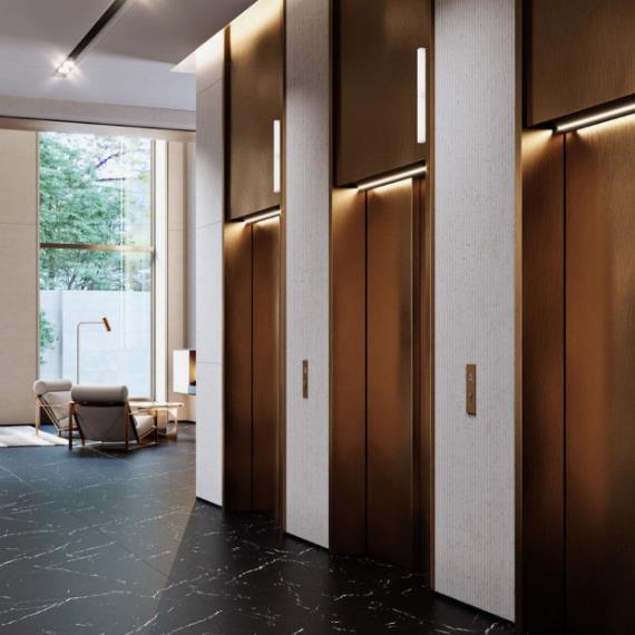 Дизайнерские входные группы и премиальные лобби с высокими потолками подчеркивают статусность клубного дома. В оформлении используются премиальные материалы, дизайнерская подсветка и панорамное остекление. Сочетание неяркого блеска медных поверхностей с натуральным камнем черных и светлых цветов, а также мраморных текстур оттеняет атмосферу благородства и обеспечивает гармоничную синергию различных элементов декора.