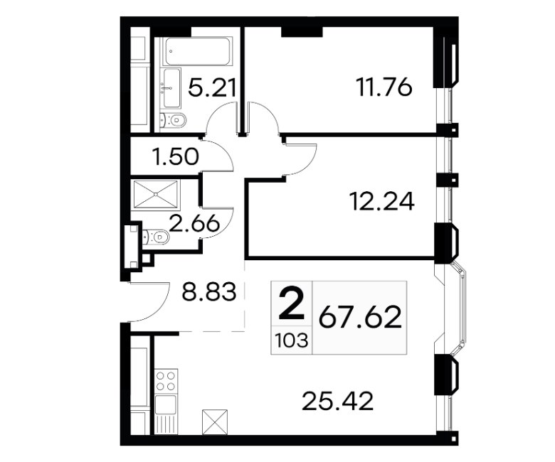 2Комнаты67.6 M²Общая площадь25.42 M²площадь кухникухня10этаж