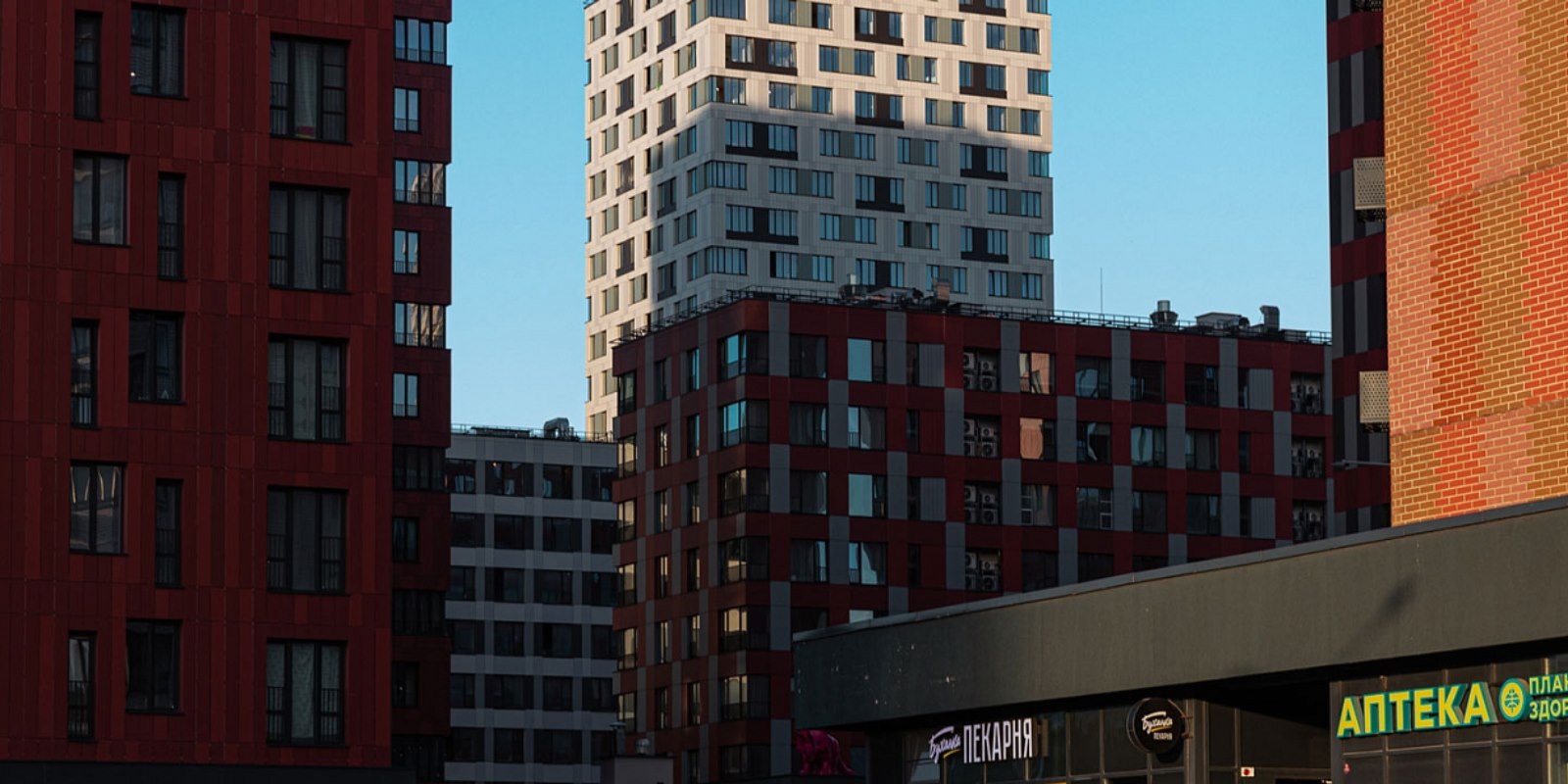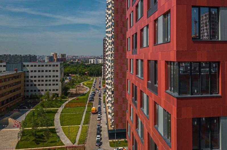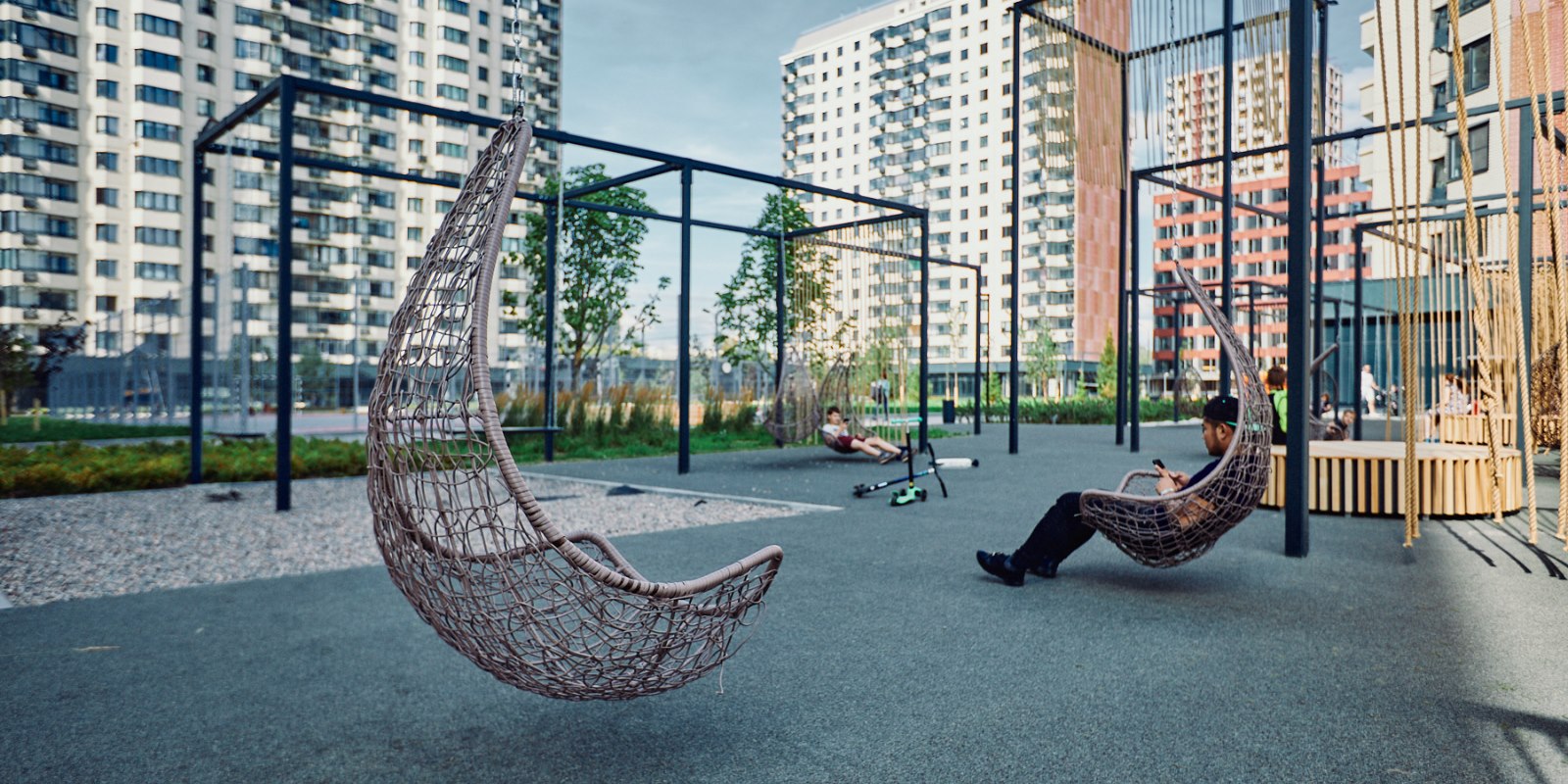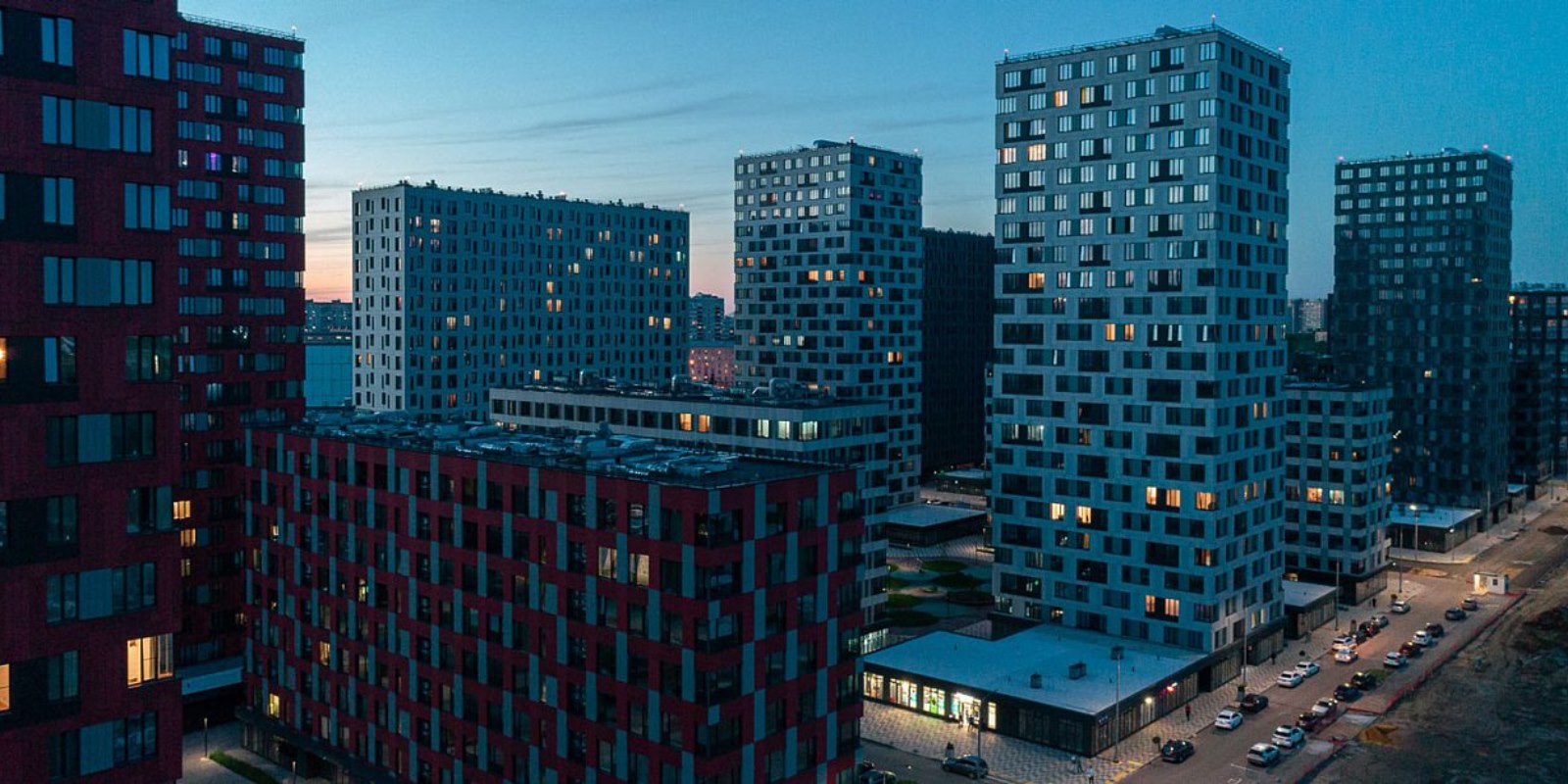 Уютная среда проживания создана квартальным типом застройки. Дома объединены в 5 закрытых кварталов, на территории которых расположены муниципальные детские сады и школа, торговые галереи в каждом доме.