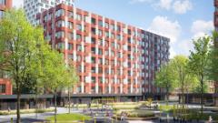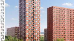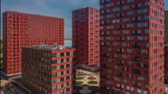 Благодаря замене панелей с эркерами на ровные на торцах появился яркий шахматный рисунок из плитки 4 цветов кирпичной гаммы. В качестве основного облицовочного материала фасадов использована белая плитка, которая позволяет домам сохранять привлекательный вид продолжительное время.