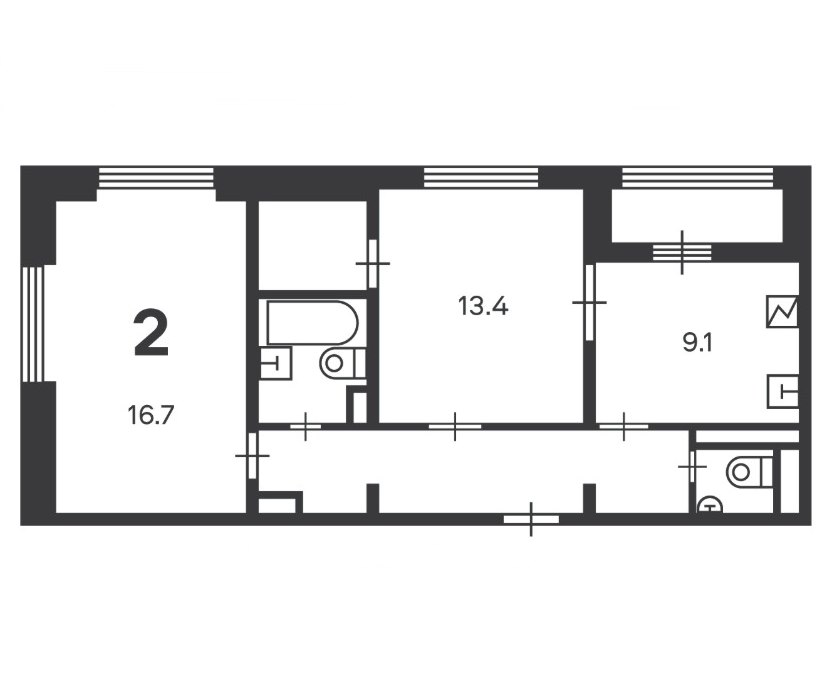 2Комнаты56 M²Общая площадь9.1 M²площадь кухникухня14этаж
