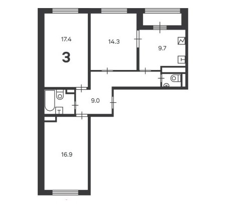3Комнаты74 M²Общая площадь9.7 M²площадь кухникухня16этаж