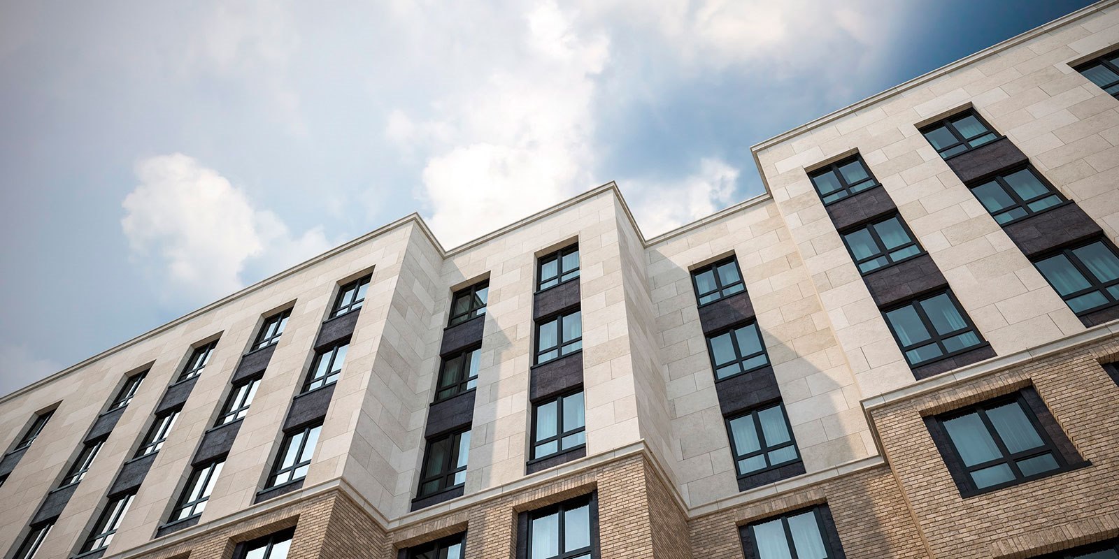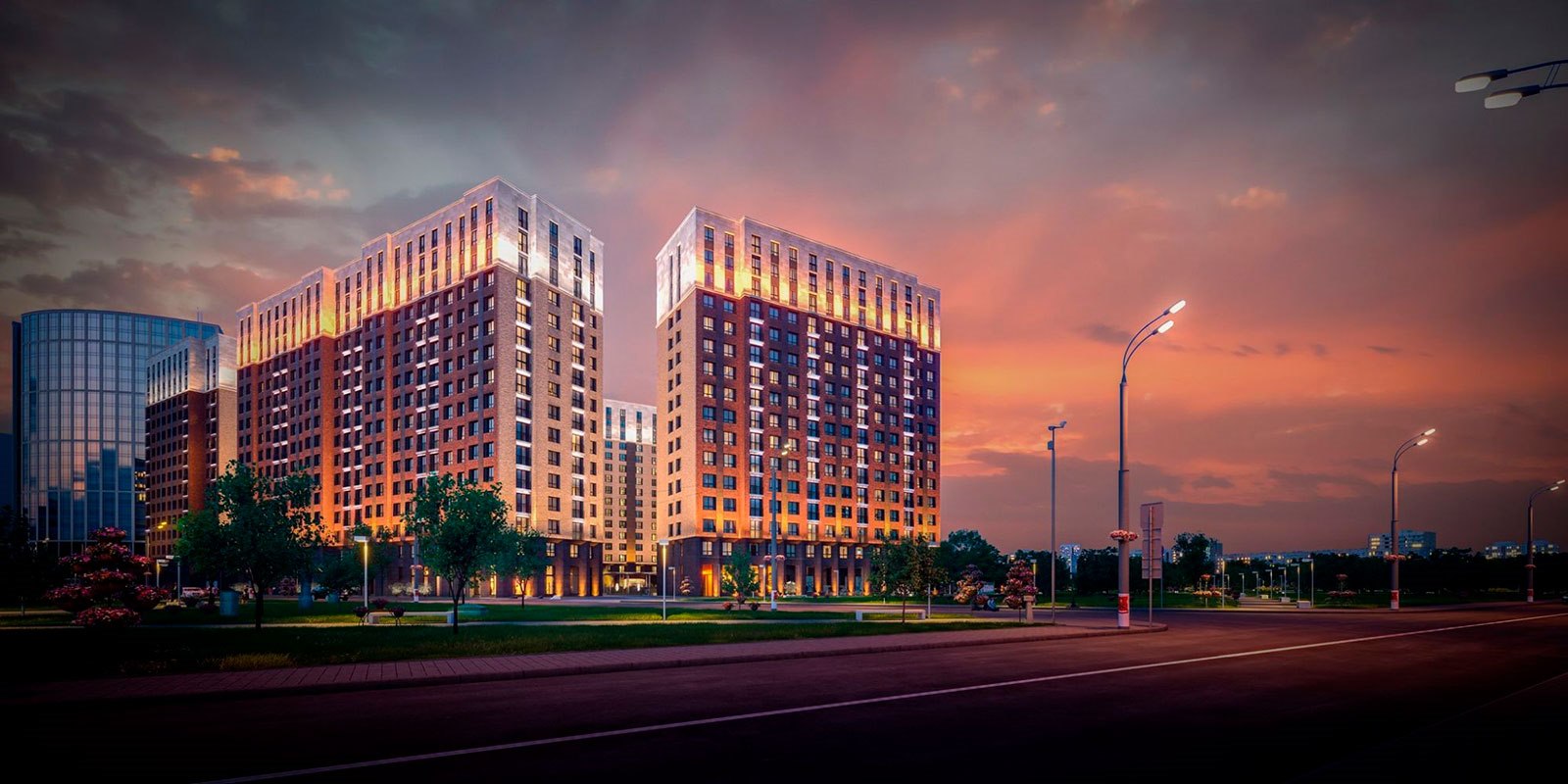 В состав ЖК вошли 4 жилых 16‑этажных монолитных корпуса. При оформлении фасада архитекторы сделали ставку на гармоничное сочетание неоклассицизма с современными архитектурными решениями и не прогадали: монументальное оформление с использованием благородного камня и клинкерного кирпича не утратит своей актуальности и через десятки лет.