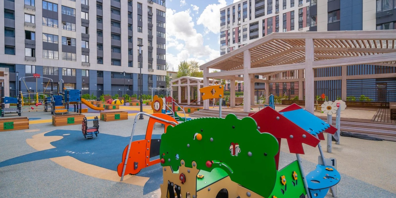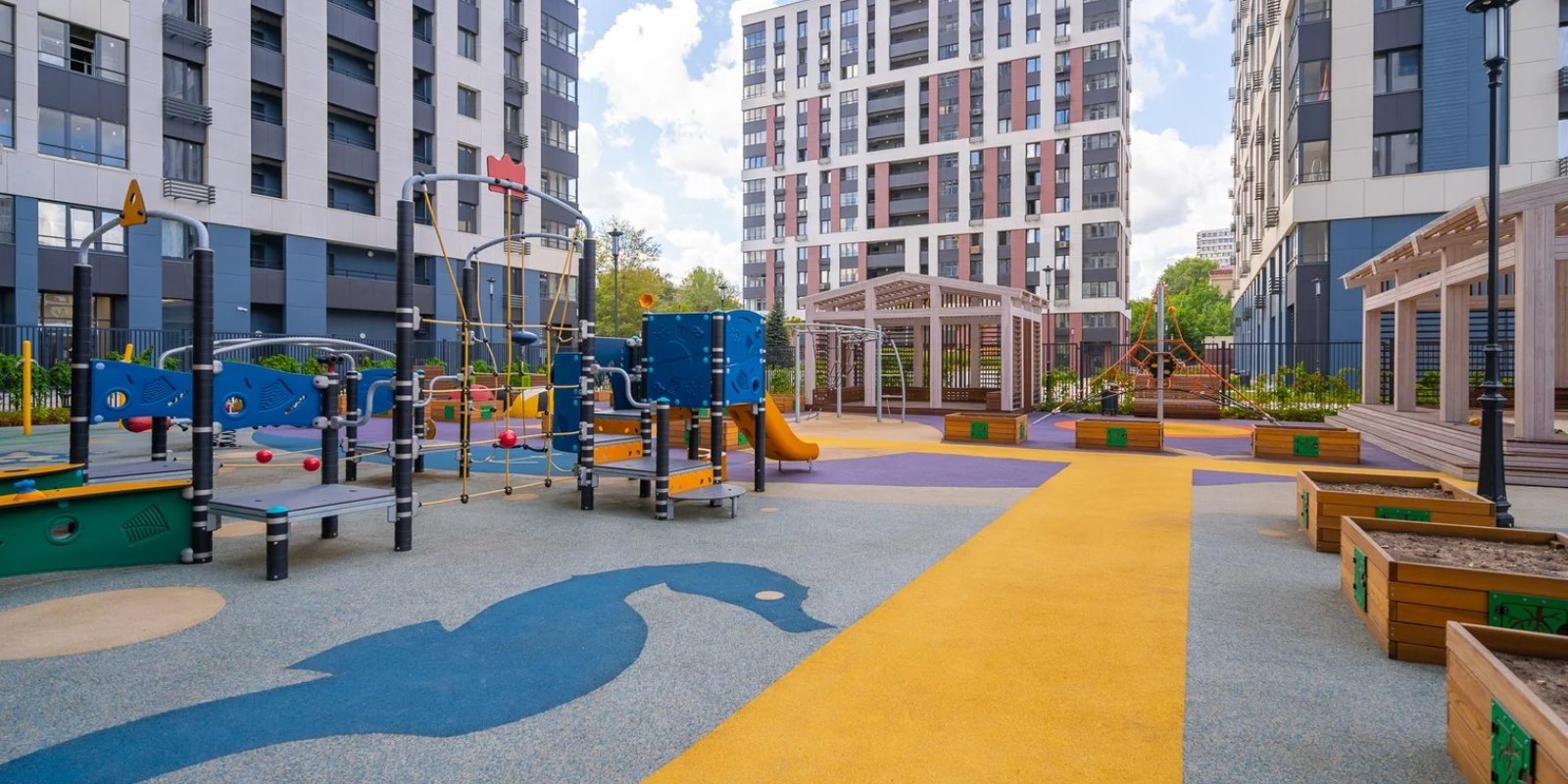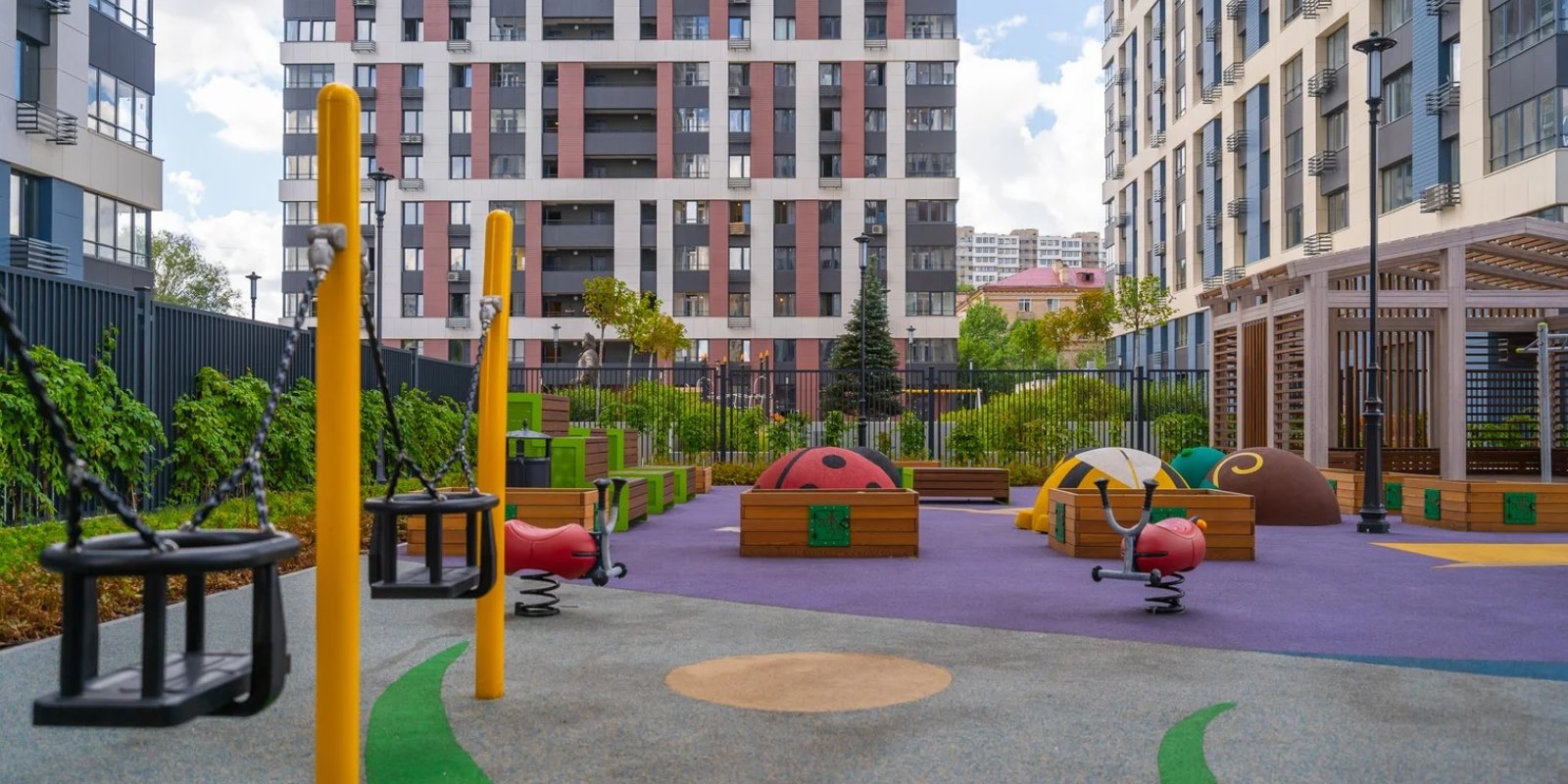 Частный детский сад будет расположен на внутридворовой территории жилого комплекса «Петровский парк», поэтому вы сможете наблюдать за вашим ребенком из окна своей квартиры. На территории детского сада предусмотрены площадки для детей младшего и дошкольного возраста, развивающие игровые панели, зоны для активных игр, мастер-классов и общих занятий, площадки под небольшое фермерское хозяйство.