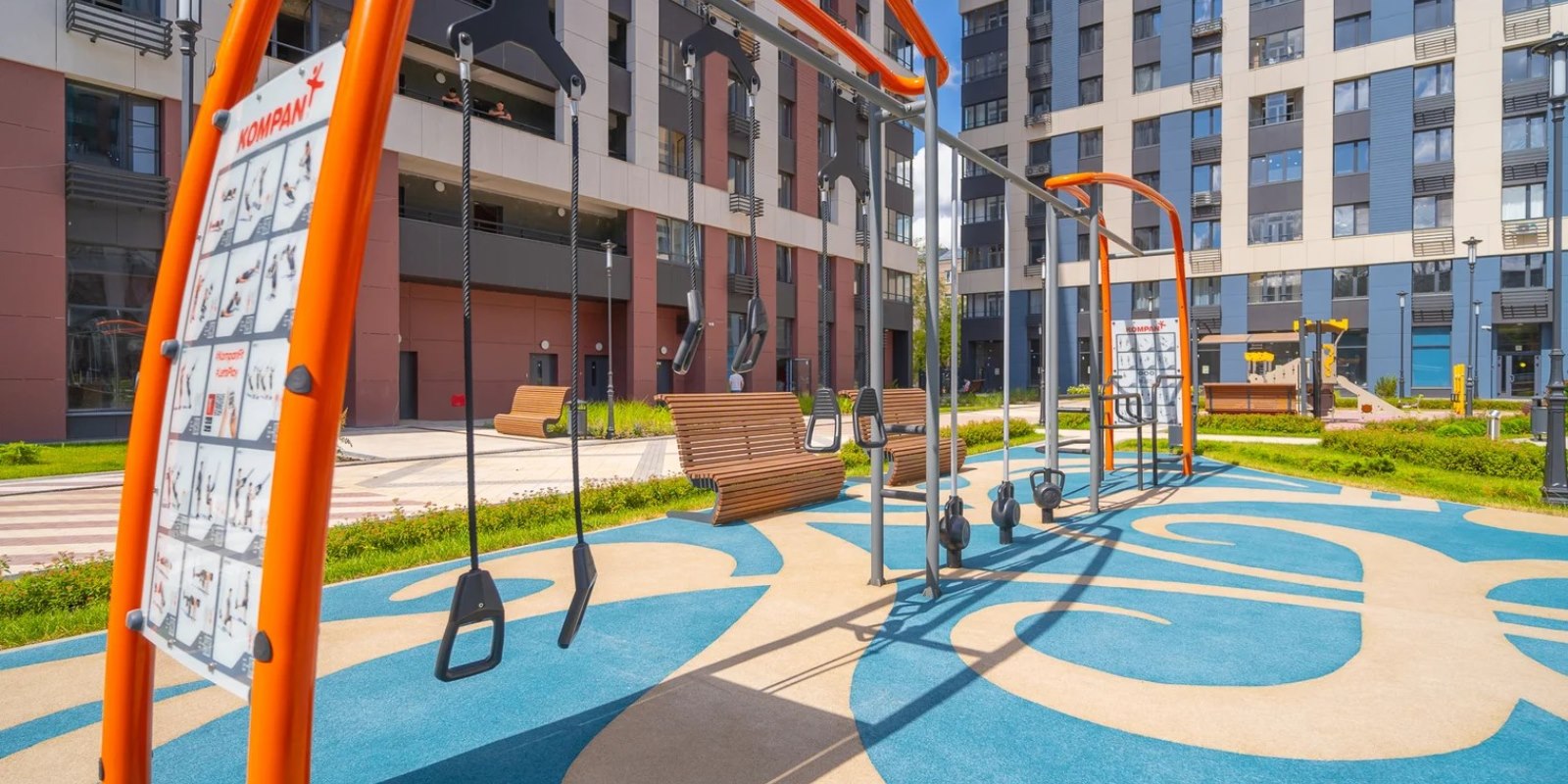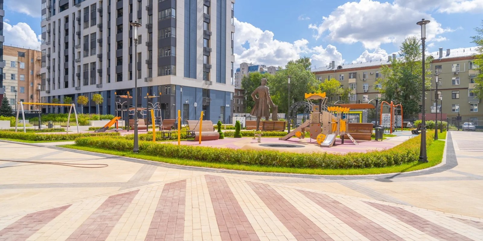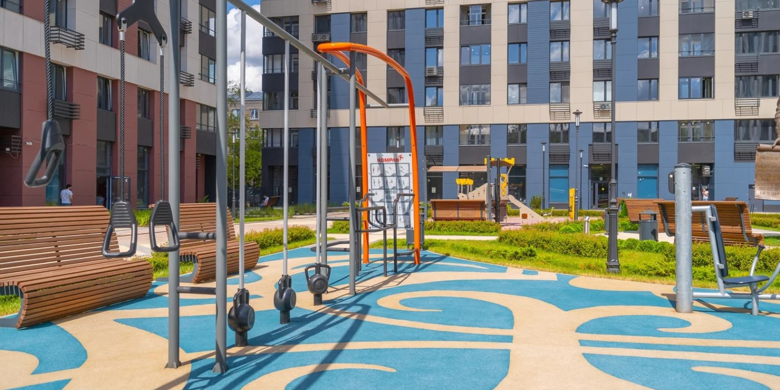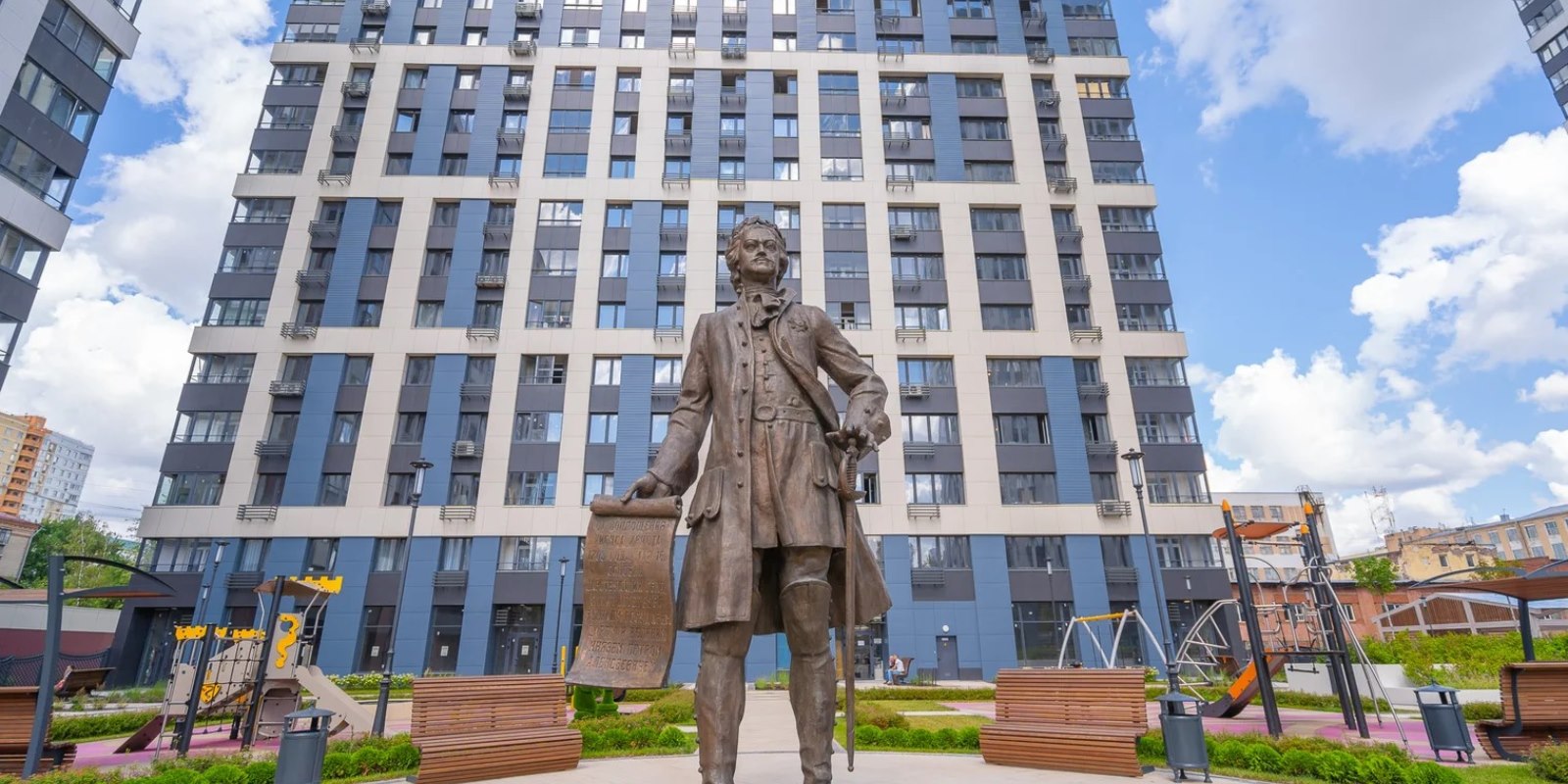 На территории комплекса воцарилась атмосфера садов петровского времени - благоустройство и многоуровневый ландшафтный дизайн внутреннего двора выполнен в стиле петровского барокко с беседками, арками, c малыми архитектурными формами, большими вазонами. Согласно принципам комфортного зонирования территории, здесь разместились детские и многофункциональные спортивные площадки, а также уютные и тихие места для отдыха и прогулок. Дворовая территория свободна от автомобильного движения. Изящное ограждение в общей стилистике обеспечивает защищенность и скроет личную жизнь от посторонних глаз .