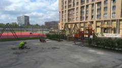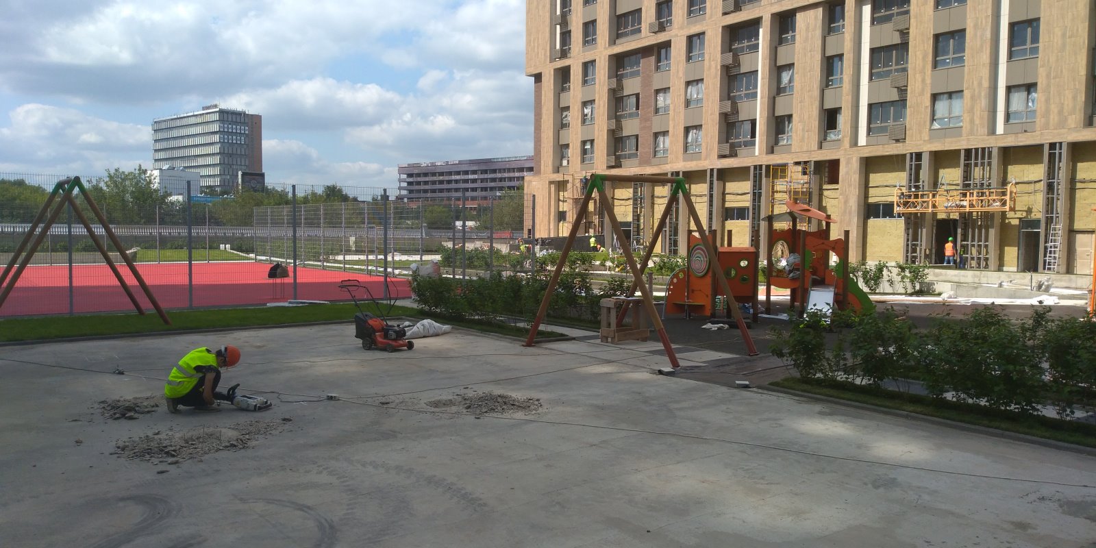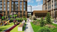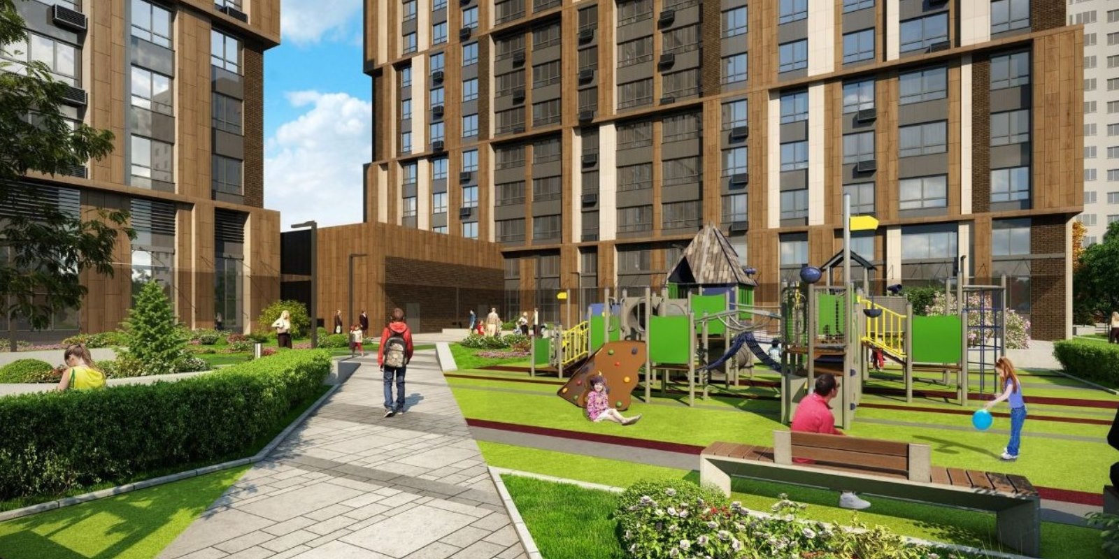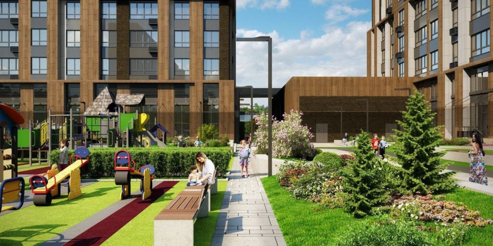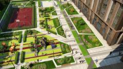 Придомовая территория закрыта для посторонних и поделена на интерактивные зоны: созданы места для отдыха и пеших прогулок. Особое внимание уделено спортивной жизни района. Созданы объекты для игр в настольный теннис и баскетбольная площадка.