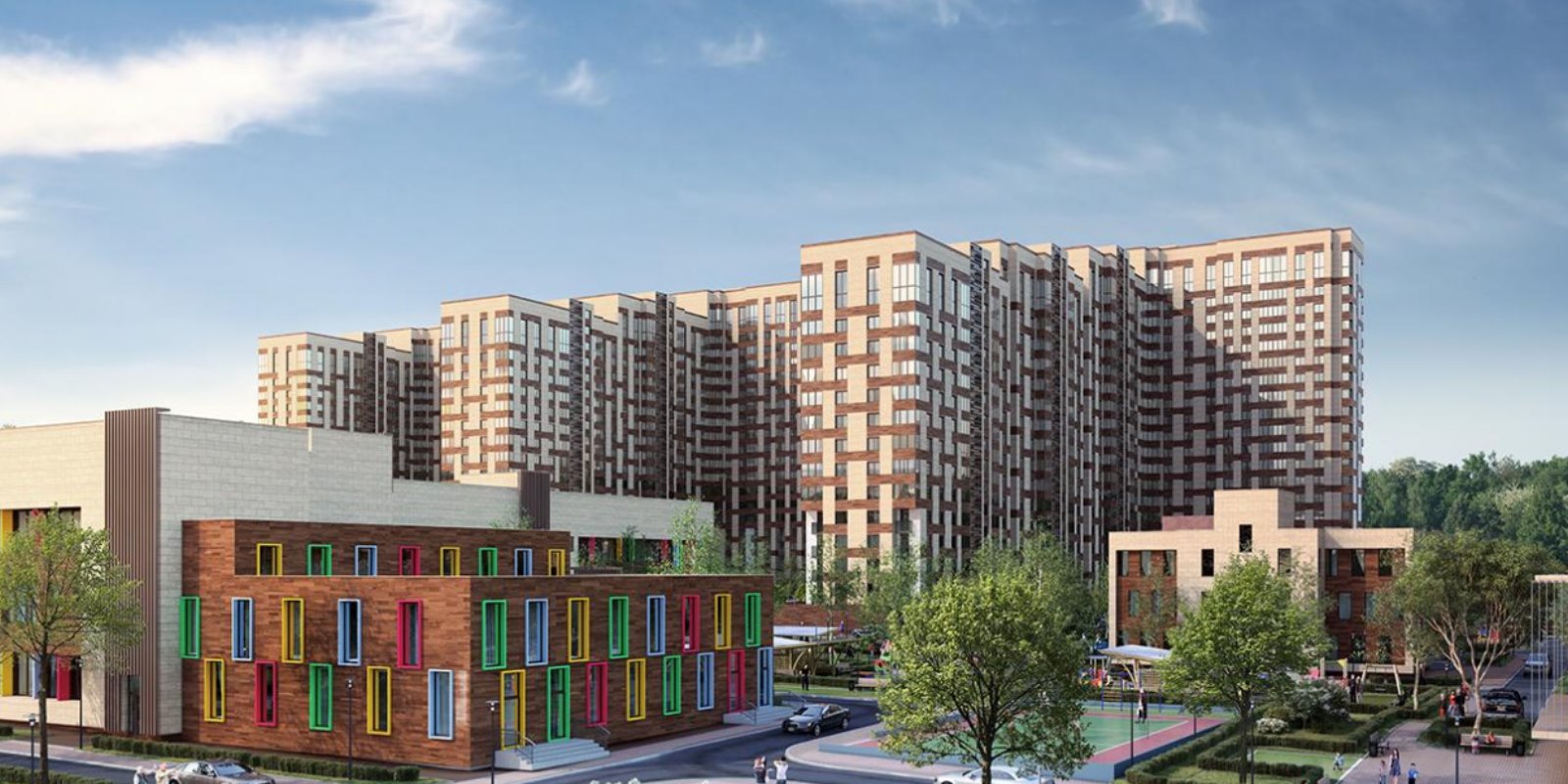 На территории жилого квартала построен Образовательный комплекс: детский сад на 150 мест и школа на 350 мест.