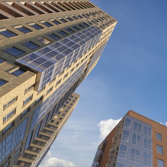 В комплексе доступно более 100 планировочных решений, от студий до 4-комнатных с возможностью объединения и перепланировки. На верхних этажах расположены квартиры с большими балконами и панорамным остеклением окон.