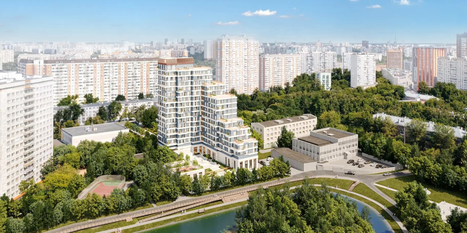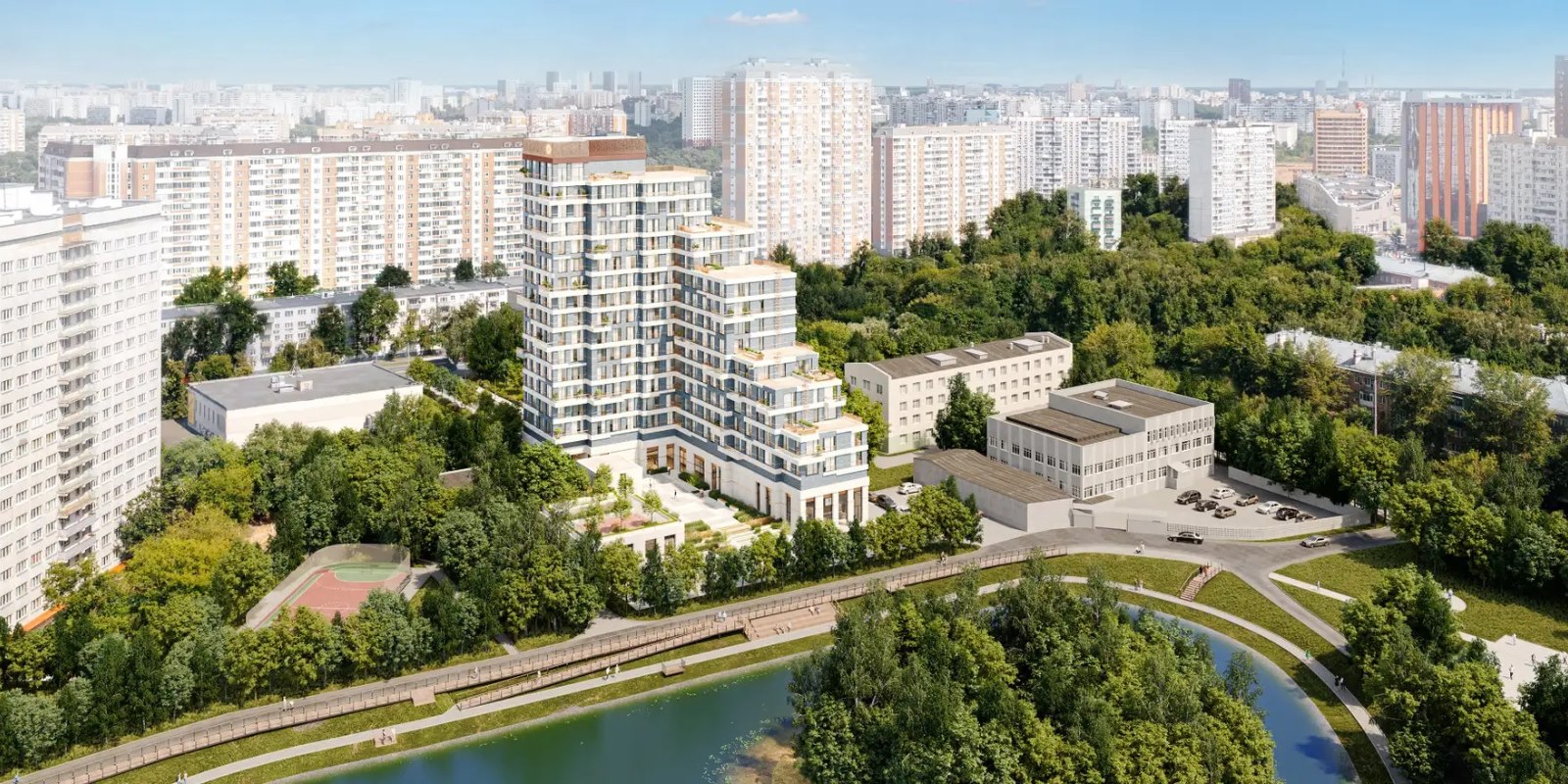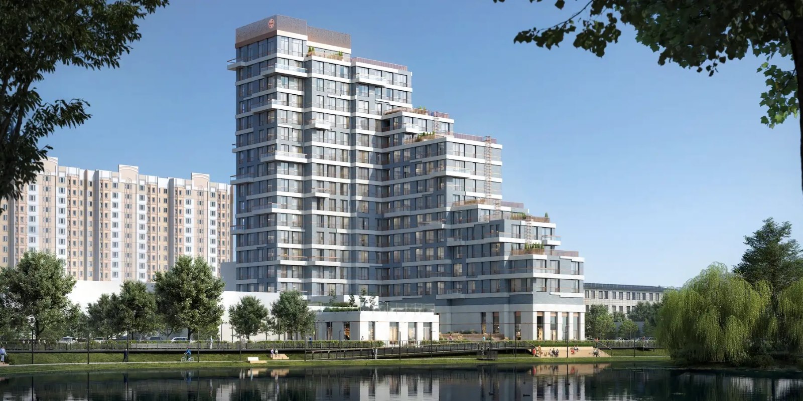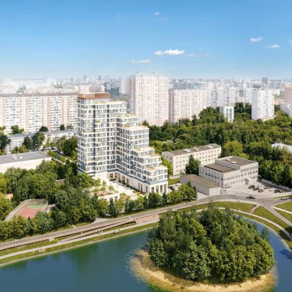 Расположение – одно из уникальных достоинств дома. Именно здесь развитая городская инфраструктура перетекает в заповедный зеленый уголок. Водная гладь в окружении деревьев создает в квартале особую атмосферу, полную спокойствия и гармонии.