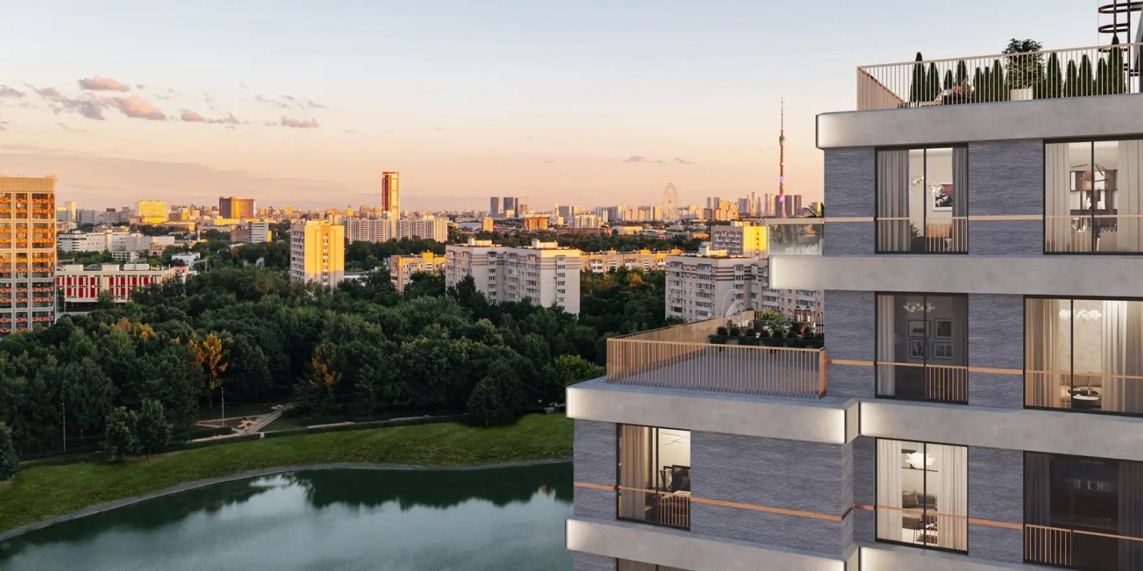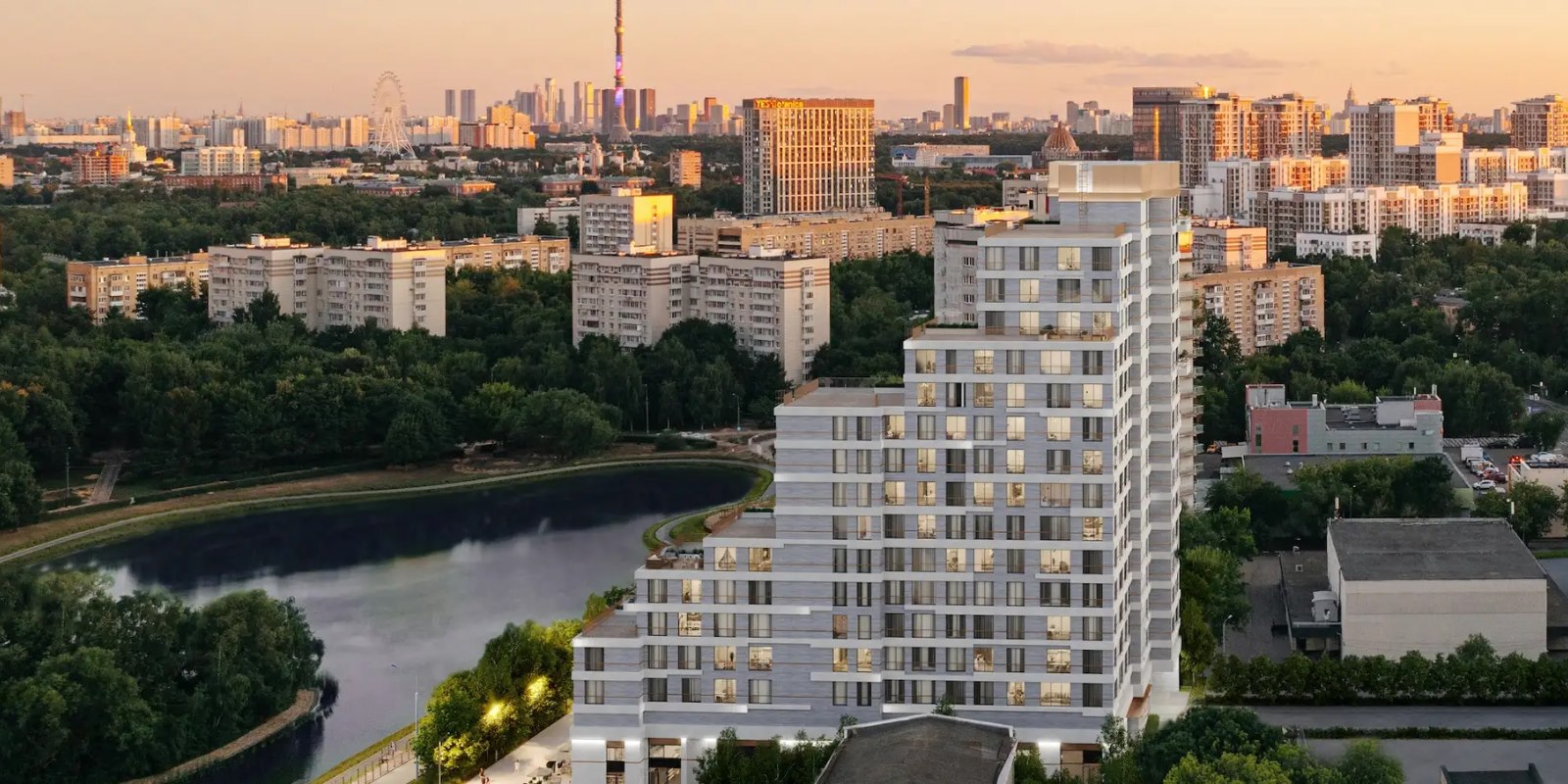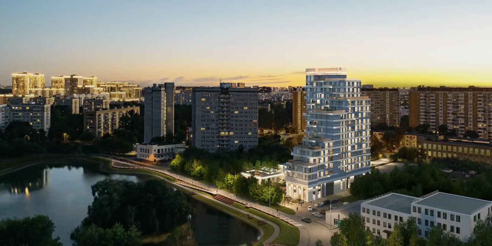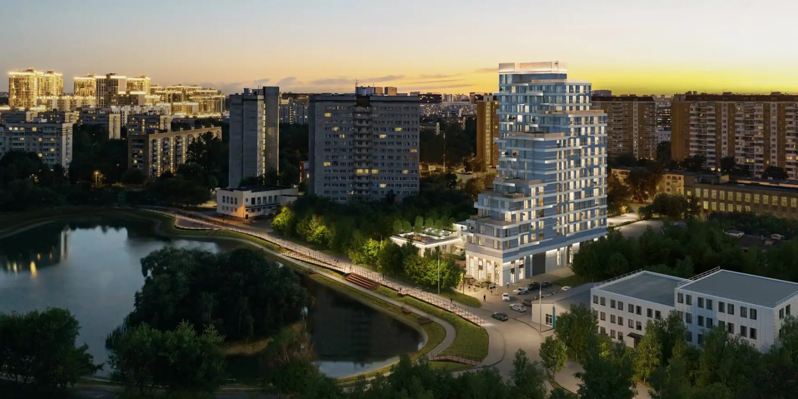 Расположение – одно из уникальных достоинств дома. Именно здесь развитая городская инфраструктура перетекает в заповедный зеленый уголок. Водная гладь в окружении деревьев создает в квартале особую атмосферу, полную спокойствия и гармонии.