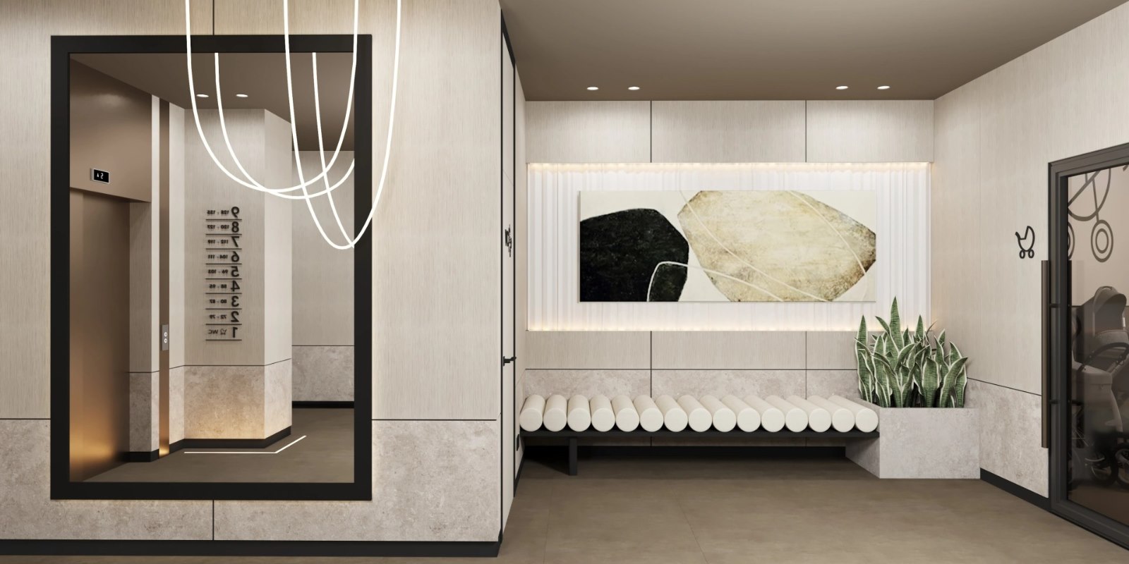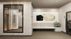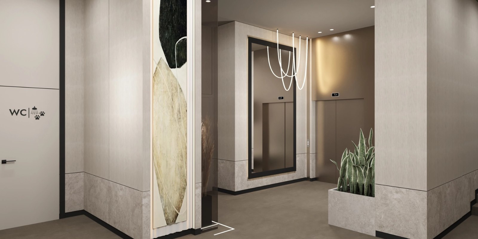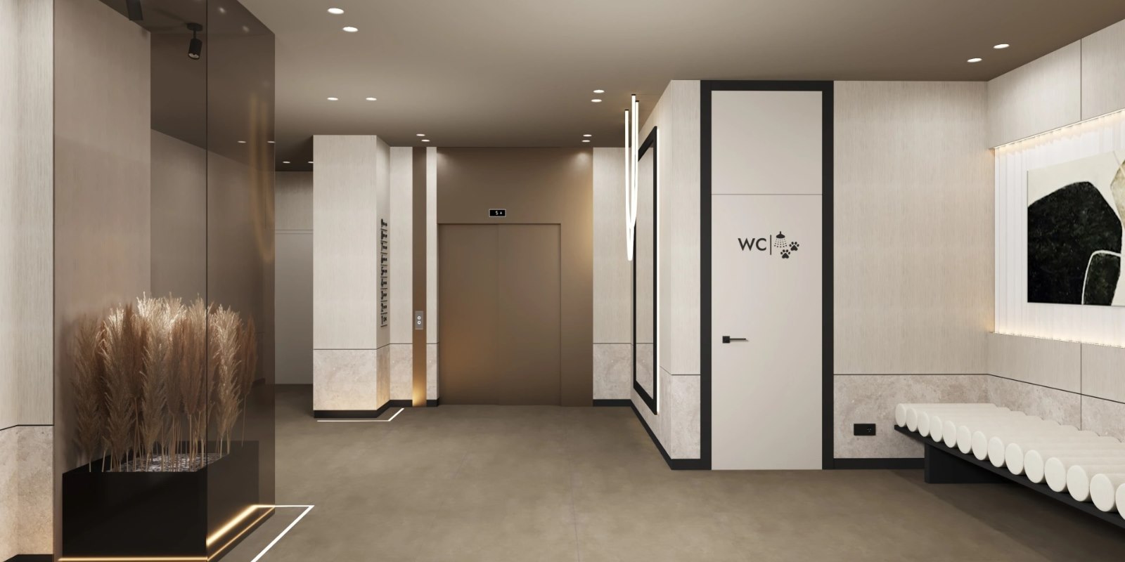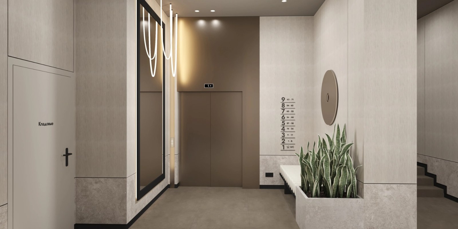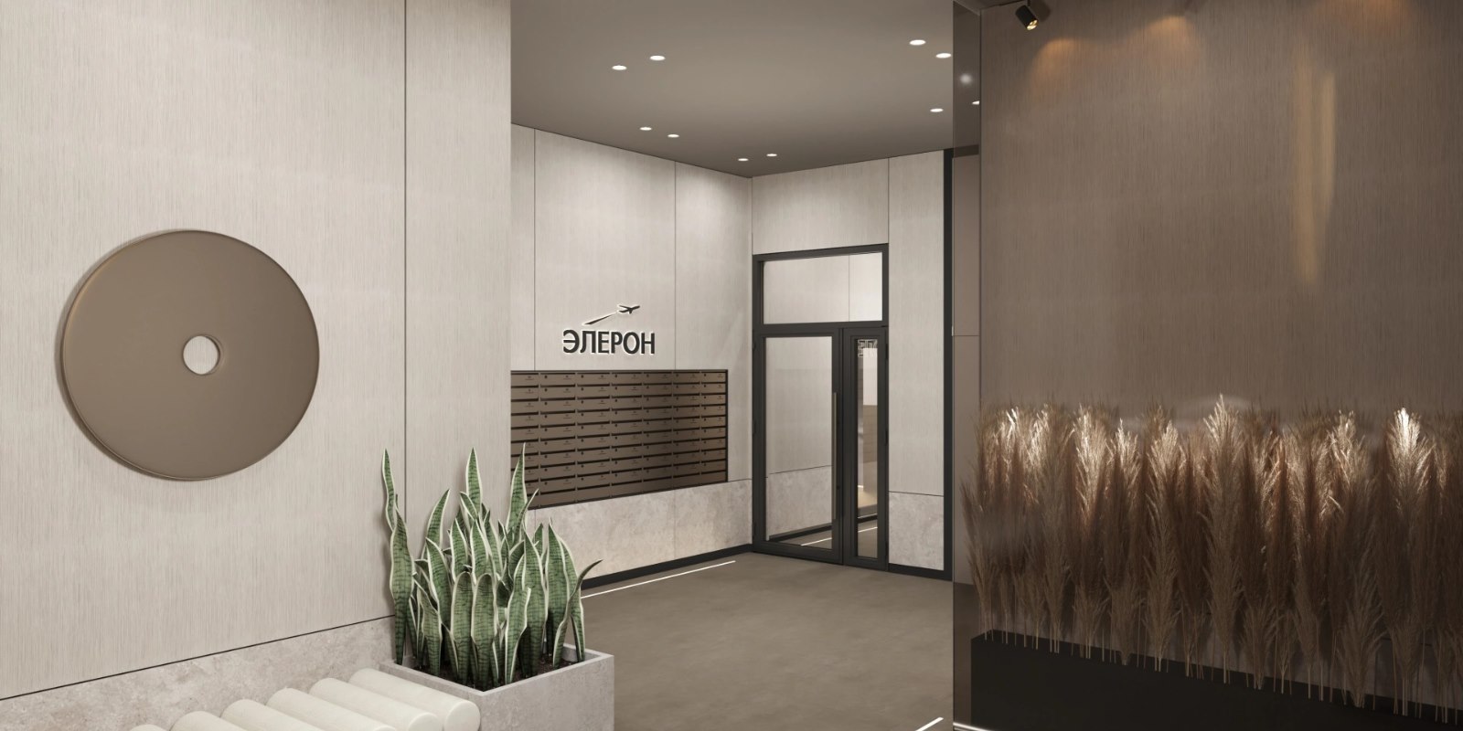 Статус не декларируется, он ощущается. Бронзовые детали на лифтовых дверях и почтовых ящиках подчеркивают единство стиля, придавая интерьеру изысканность. Почтовые ящики, выполненные в форме элерона — части крыла самолета, тонко играют с идеей воздушности и свободы.