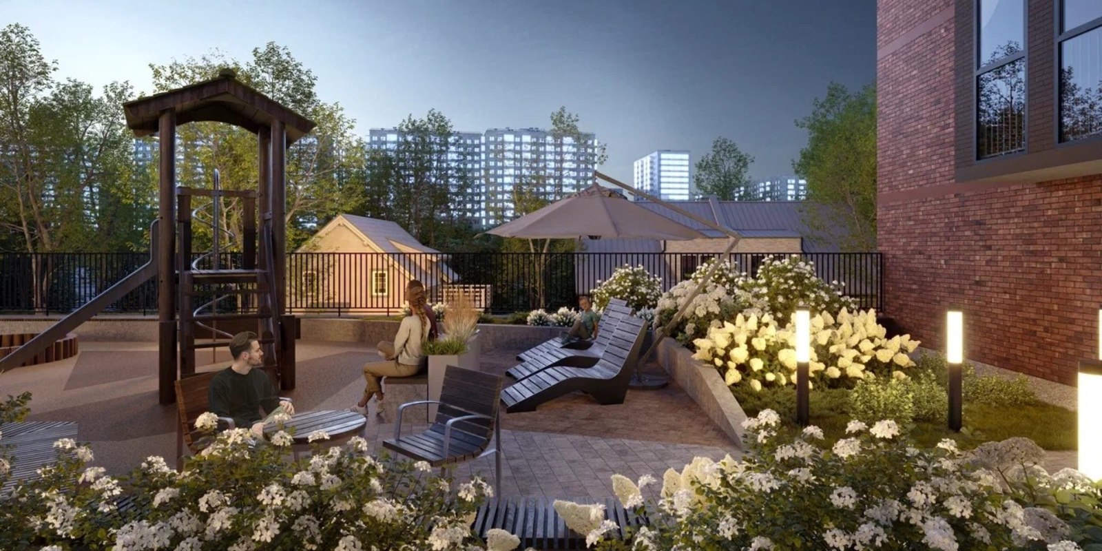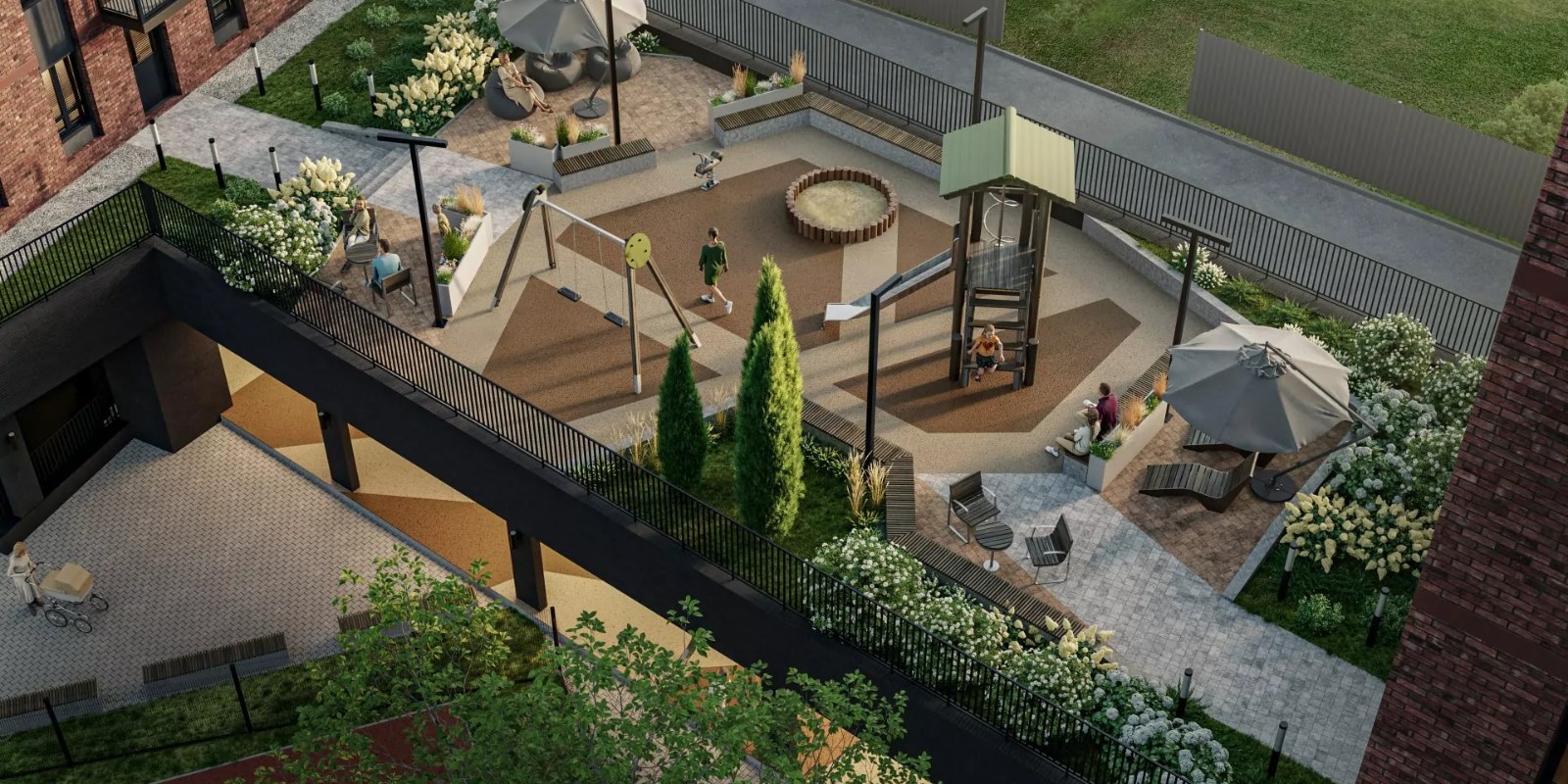 — Двухуровневая площадка — сценарий идеального отдыха. Наверху — современные лаунж-зоны для душевных разговоров и игровой комплекс для детей, внизу — спортивные зоны для тех, кто привык жить в движении.