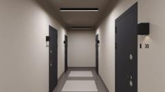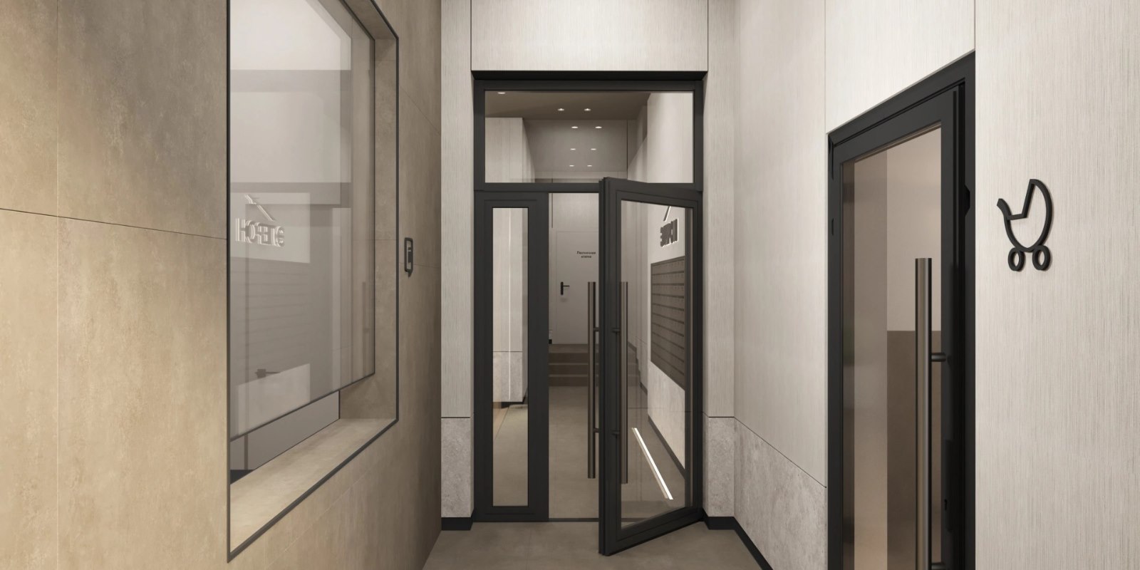 Керамогранитные полы ведут вас по точным, выверенным линиям, словно задавая взлетную полосу. Встроенные светильники мягко освещают каждый шаг, а декоративная подсветка вдоль стен добавляет глубины и объёма, превращая интерьер в место, где стиль и функциональность идут рука об руку.