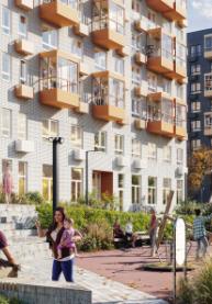 На первых этажах домов — кафе, магазины и полезные сервисы. Часто их открывают сами жители.