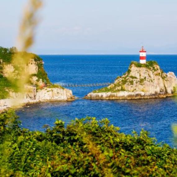 За 10 минут можно доехать до живописного и зелёного острова Русский. Здесь много диких пляжей и появляются новые базы отдыха с летними домиками. На острове расположен большой современный Приморский океанариум, посетить который будет интересно и взрослым, и детям.