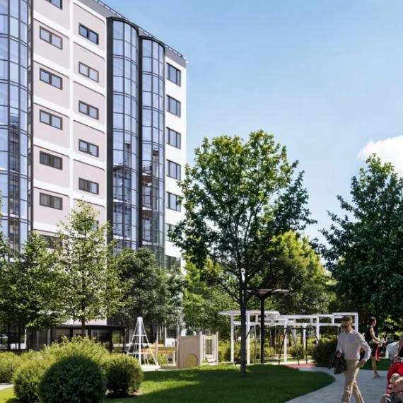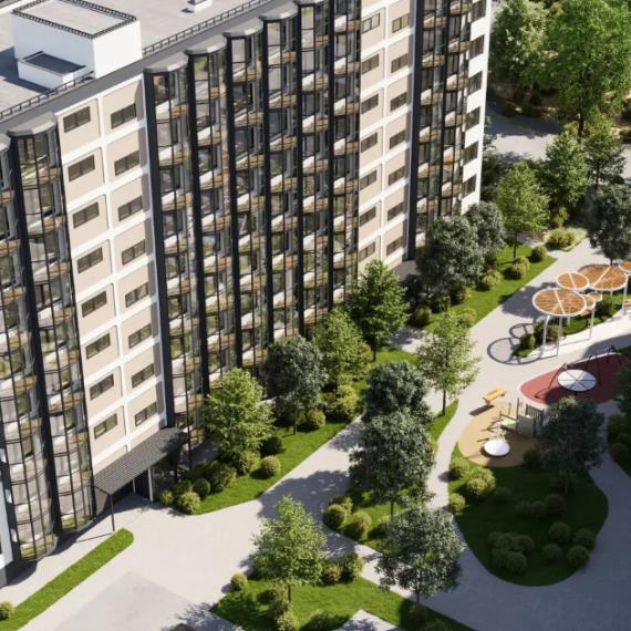 Двор жилого комплекса зеленый и уютный. Здесь можно прогуляться по дорожкам или позаниматься спортом на площадке с тренажерами, а детей ждет увлекательная игровая площадка. Также предусмотрена просторная зона для парковки.