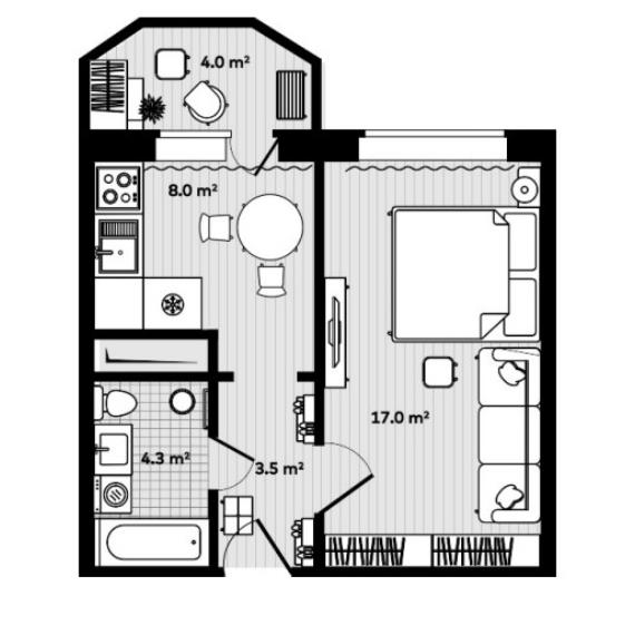 Предлагаются 1-комнатные и 2-комнатные планировки. Квартиры компактные (34,7-53 м²), что делает их очень доступными для покупки.