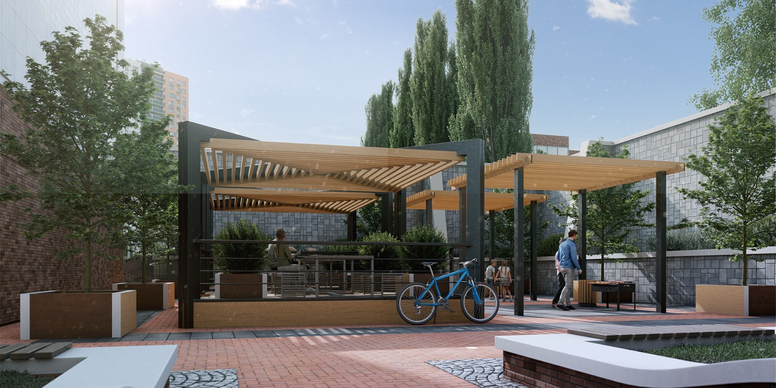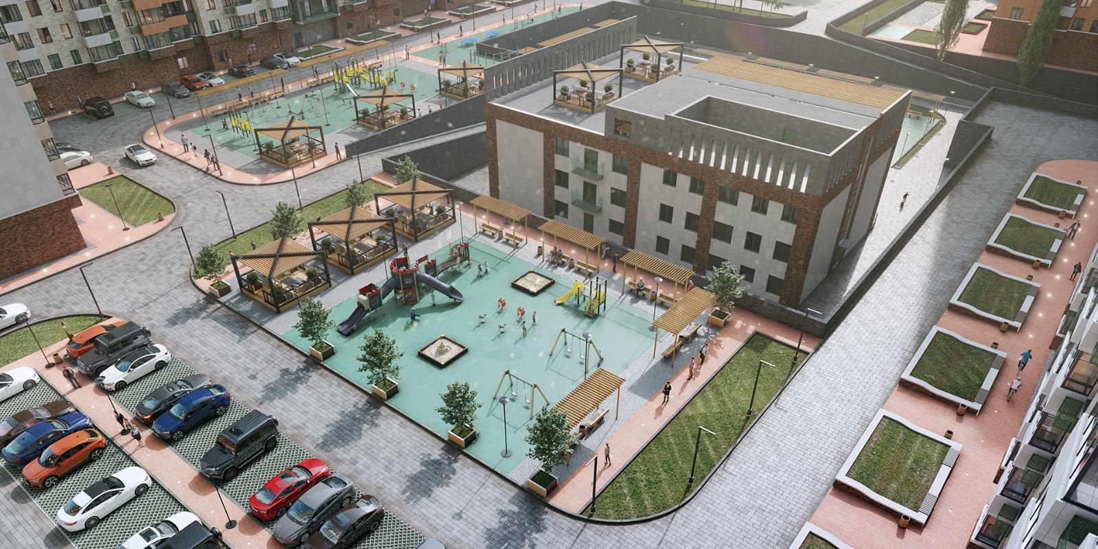 ЖК Гринсайд — комплекс, который вдохновляет! В этом проекте мы вышли на новый уровень благоустройства и создали не только собственную инфраструктуру, но и прогулочную аллею, амфитеатр с фонтаном и часовую башню.
