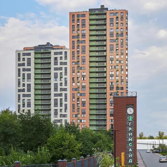 Нельзя не отметить индивидуальный проект озеленения, реализованный на территории «Гринсайда», а также прогулочную аллею с фонтаном - здесь будет приятно гулять всей семьей в любую погоду. Масштабная башня с часами, которую видно из любой точки жилого комплекса, станет прекрасной локацией для встреч.