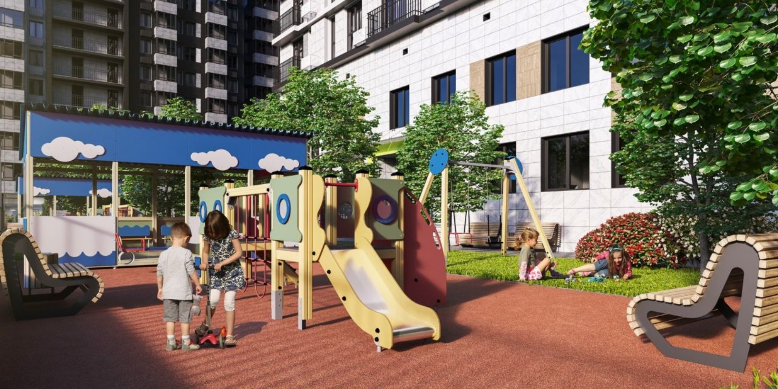 ЖК «Соколова, 68» — это продуманное и функциональное дворовое пространство с собственным детским садом на 63 места. На территории комплекса предусмотрено озеленение, а также создание специальных мест для отдыха, нескольких детских площадок и спортивных зон — здесь каждый найдёт как с пользой и интересом провести свой досуг.