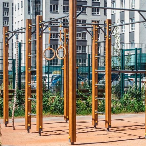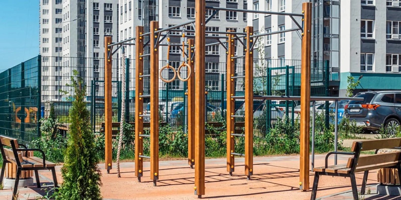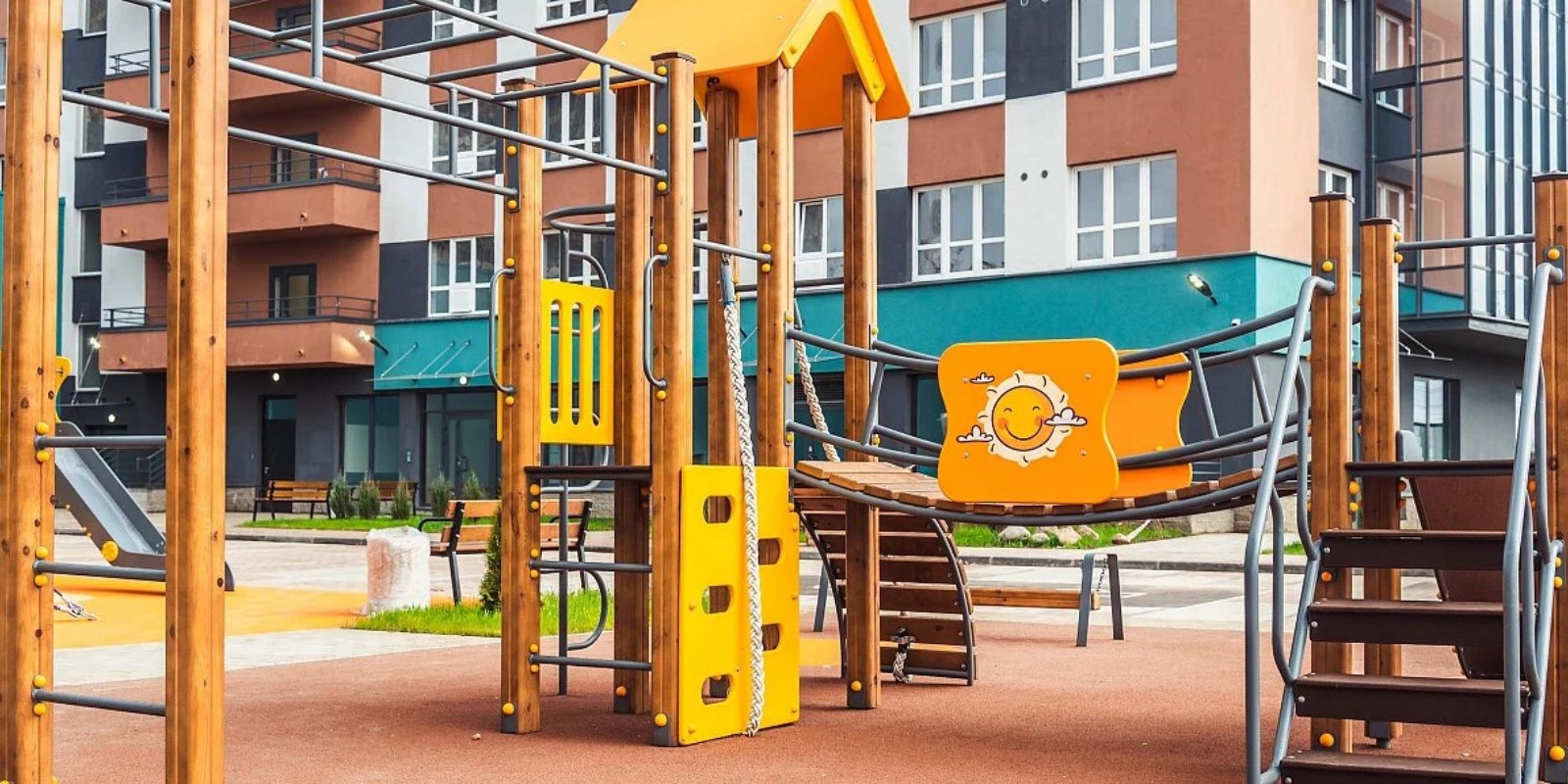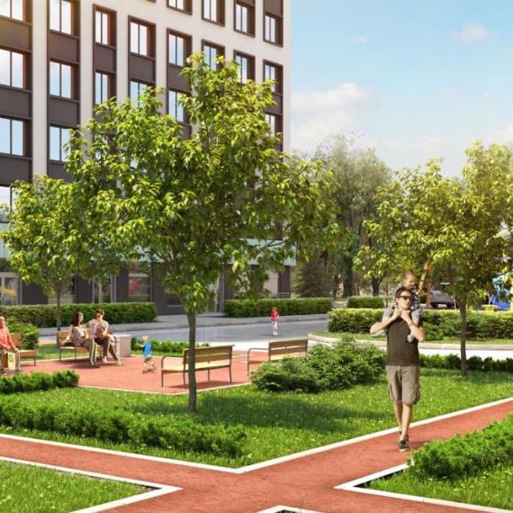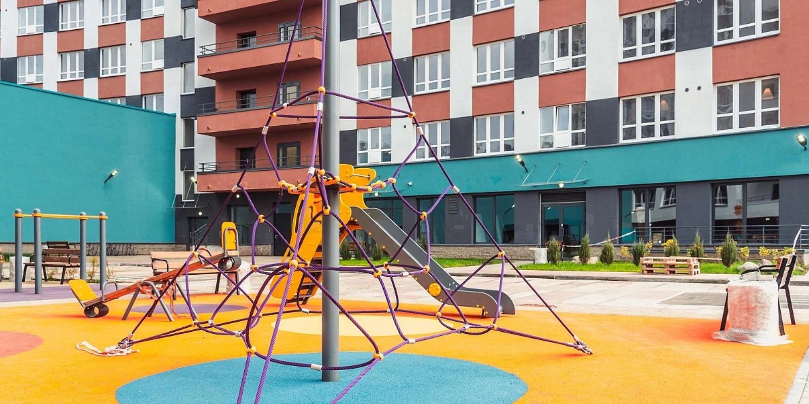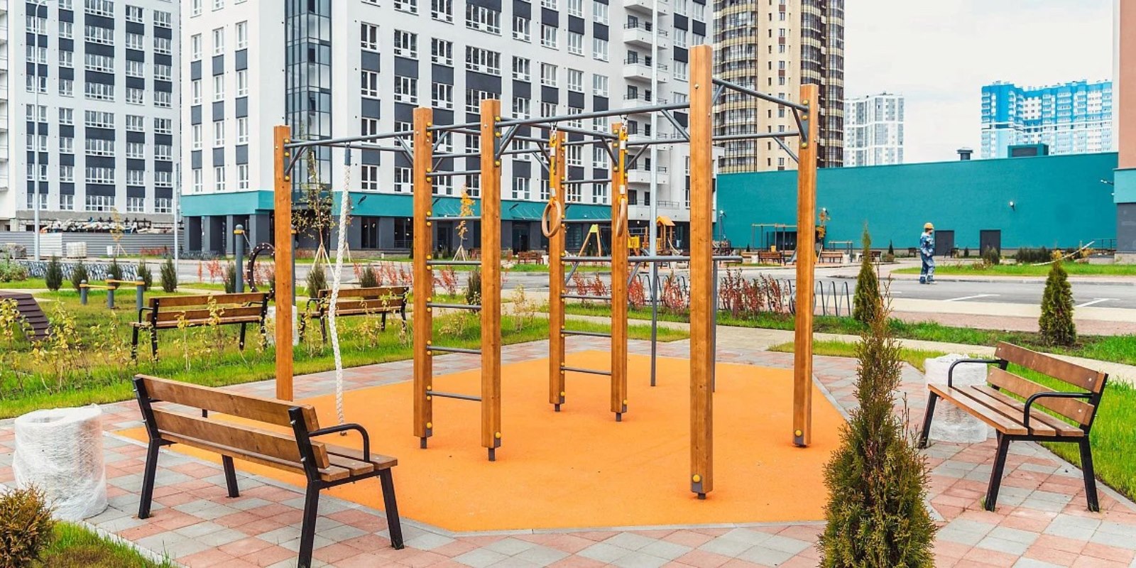Три дворовые зоны соединены в единую благоустроенную и безопасную территорию. В каждой есть игровые площадки для детей дошкольного и школьного возраста, спортивные площадки с тренажерами, баскетбольным кольцом, место для игры в бадминтон.