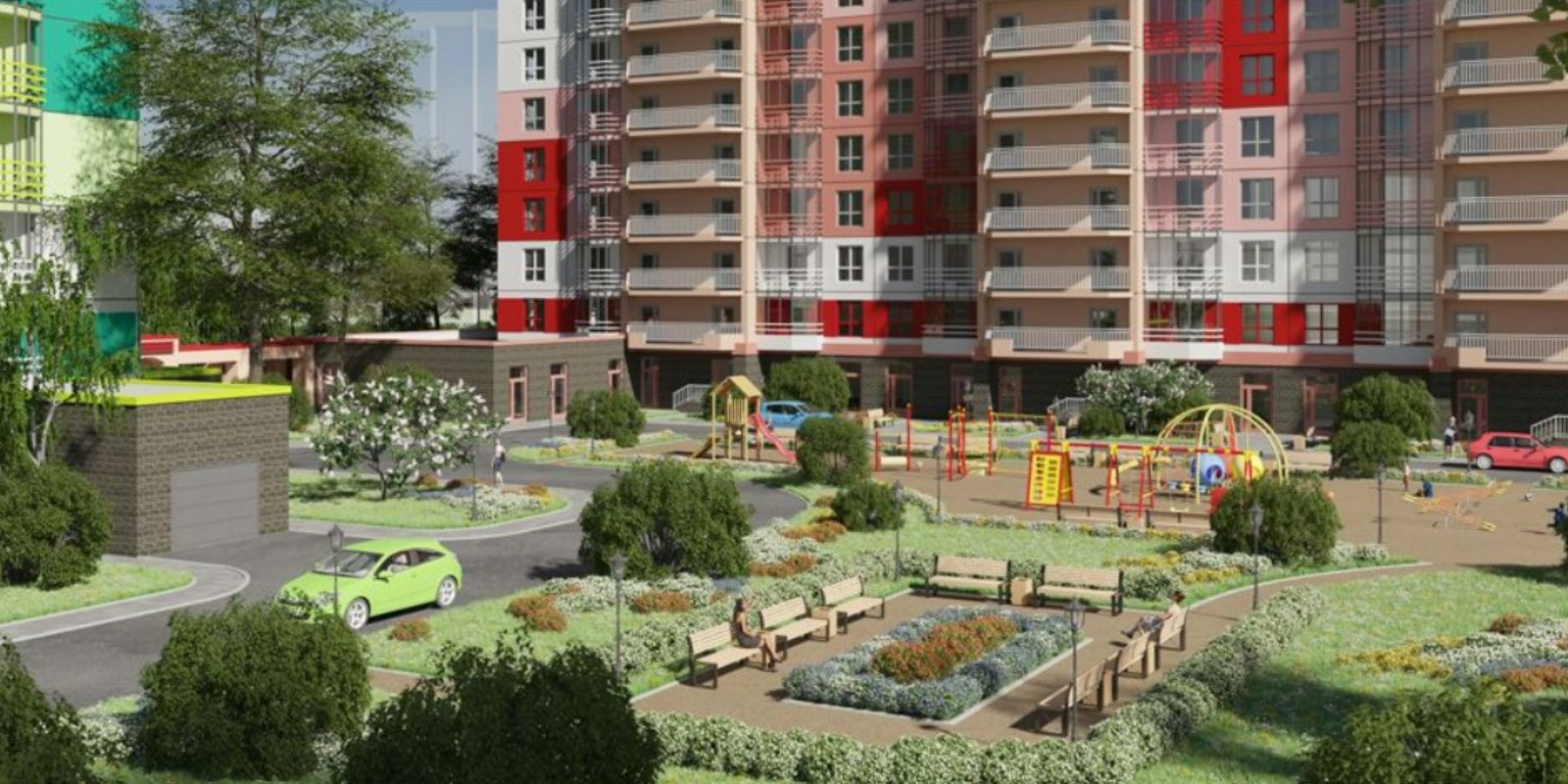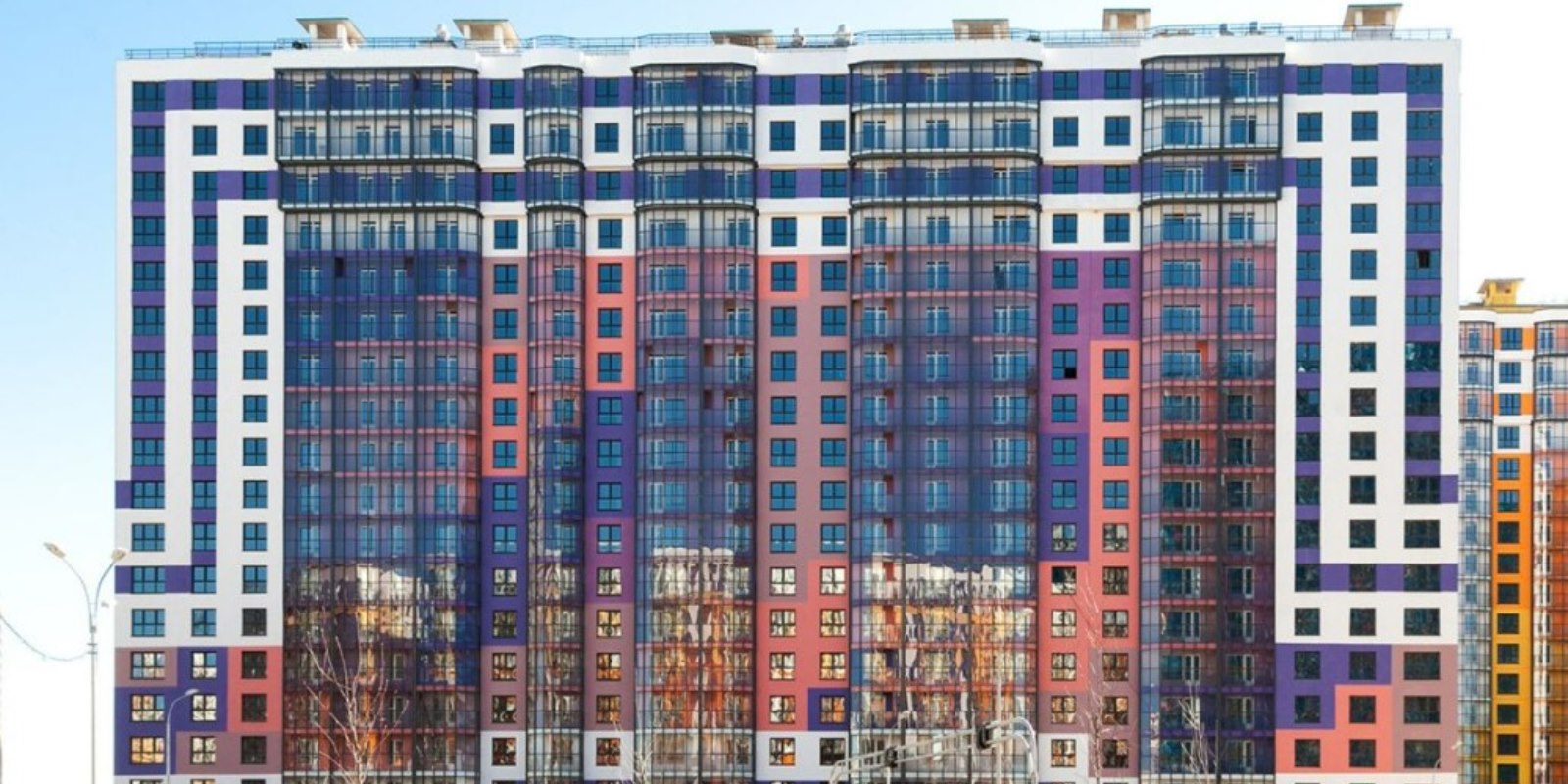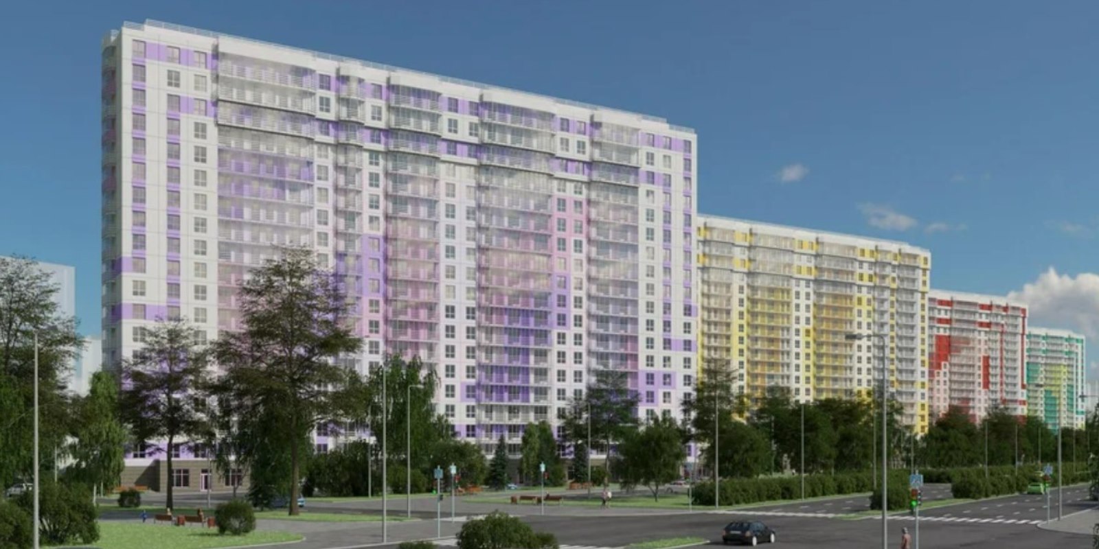 ЖК YOGA – четыре 19-этажных дома комфорт-класса. Фасады зданий выполнены в единой концепции, сочетающей в себе гармонию цветовых решений (зеленый – символ экологии и близости к природе, красный – энергия и активный образ жизни, желтый – оптимизм, а фиолетовый – умиротворение) и легкий минимализм экстерьера (использование белого как контраста).