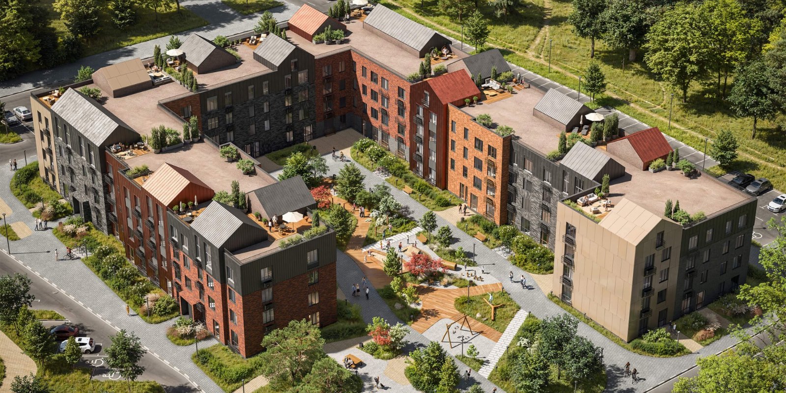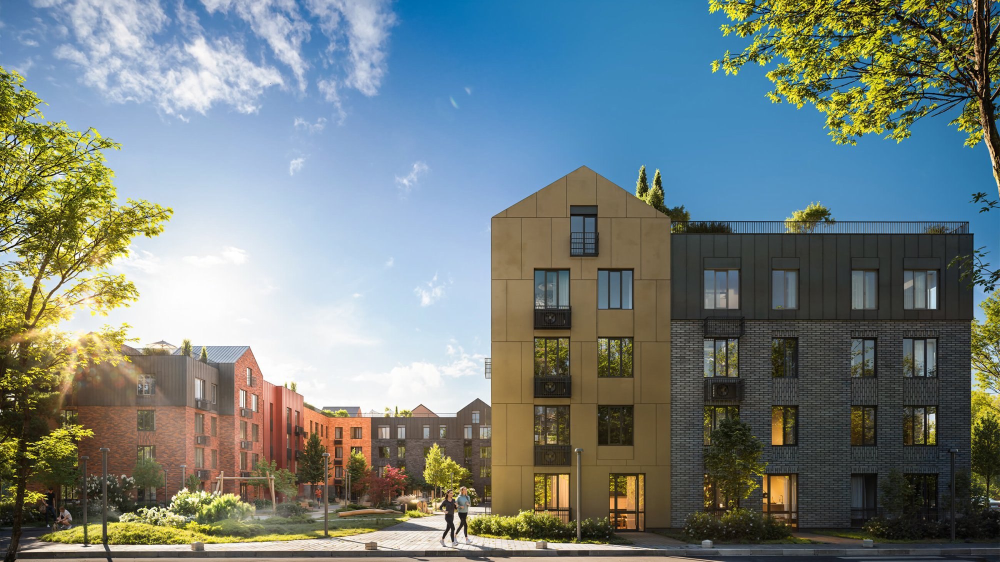 Жилой комплекс состоит из более 20 корпусов высотой от четырех до семи этажей и включает около 2 тыс. квартир общей площадью 85,5 тыс. м² в различных планировочных решениях: одно-, двух- и трехкомнатные квартиры, студии, с мастер-зонами, собственными террасами и выходом на крышу.