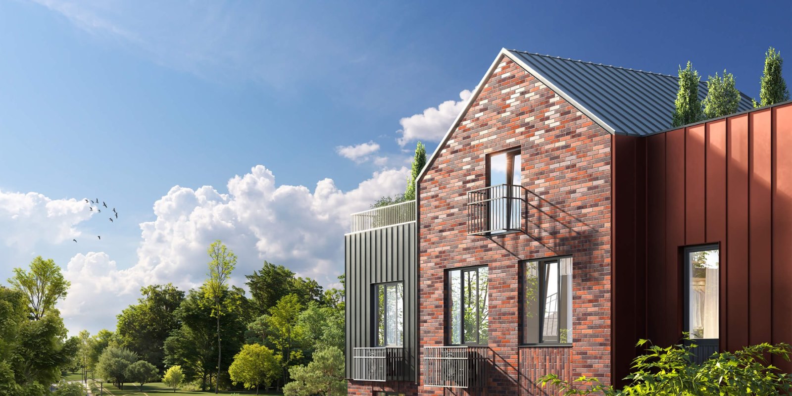 Красивые пейзажи открываются жителям с собственных террас. На крыше можно встретить день с кружкой кофе или провести вечер с друзьями.