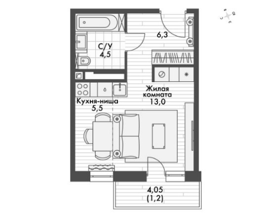 | 1-комн. | 29.5 – 63 | 5.01 – 8.8 млн |