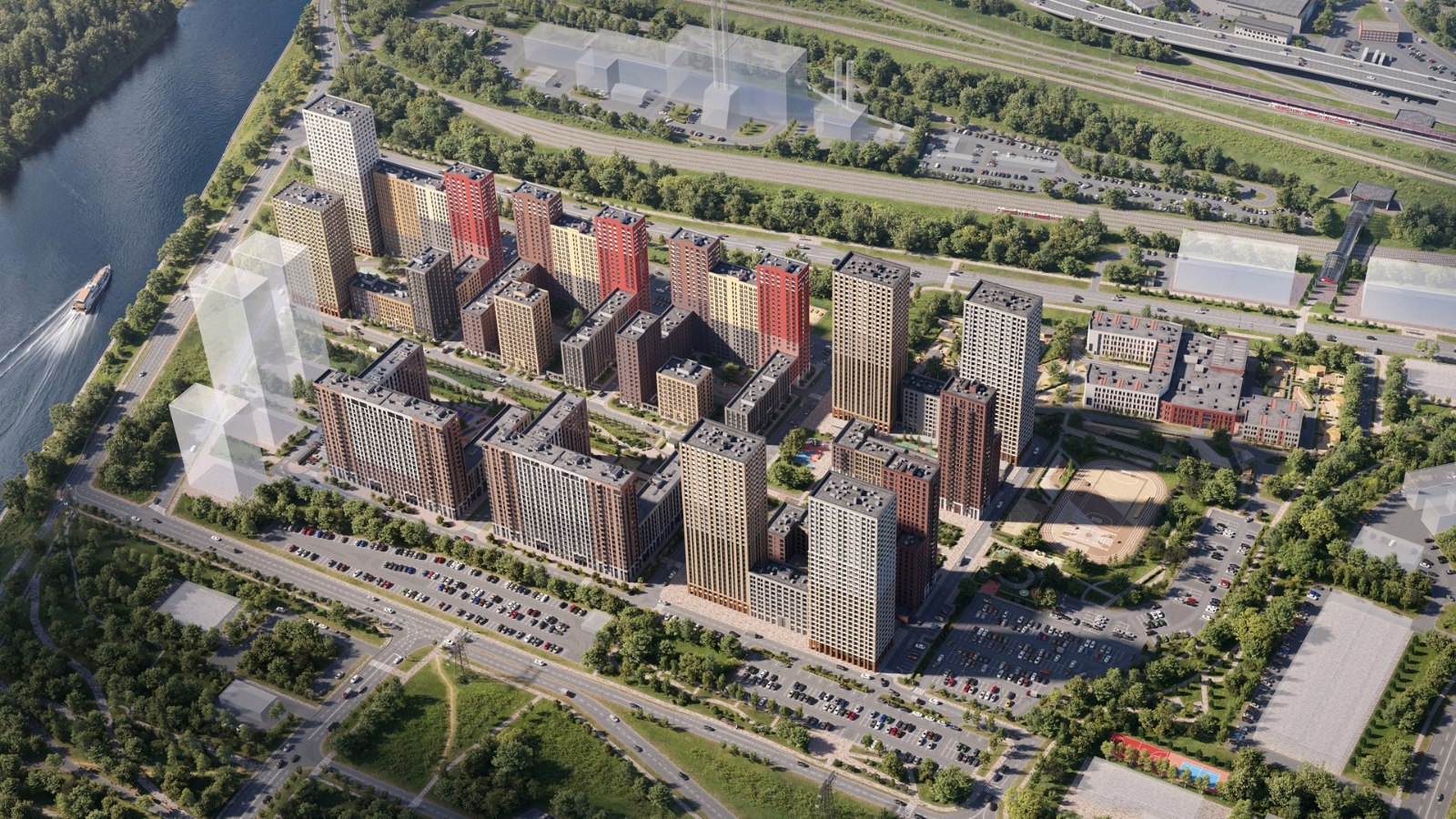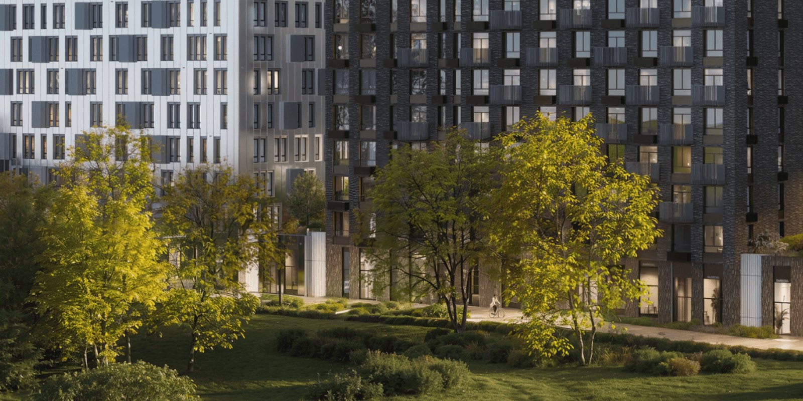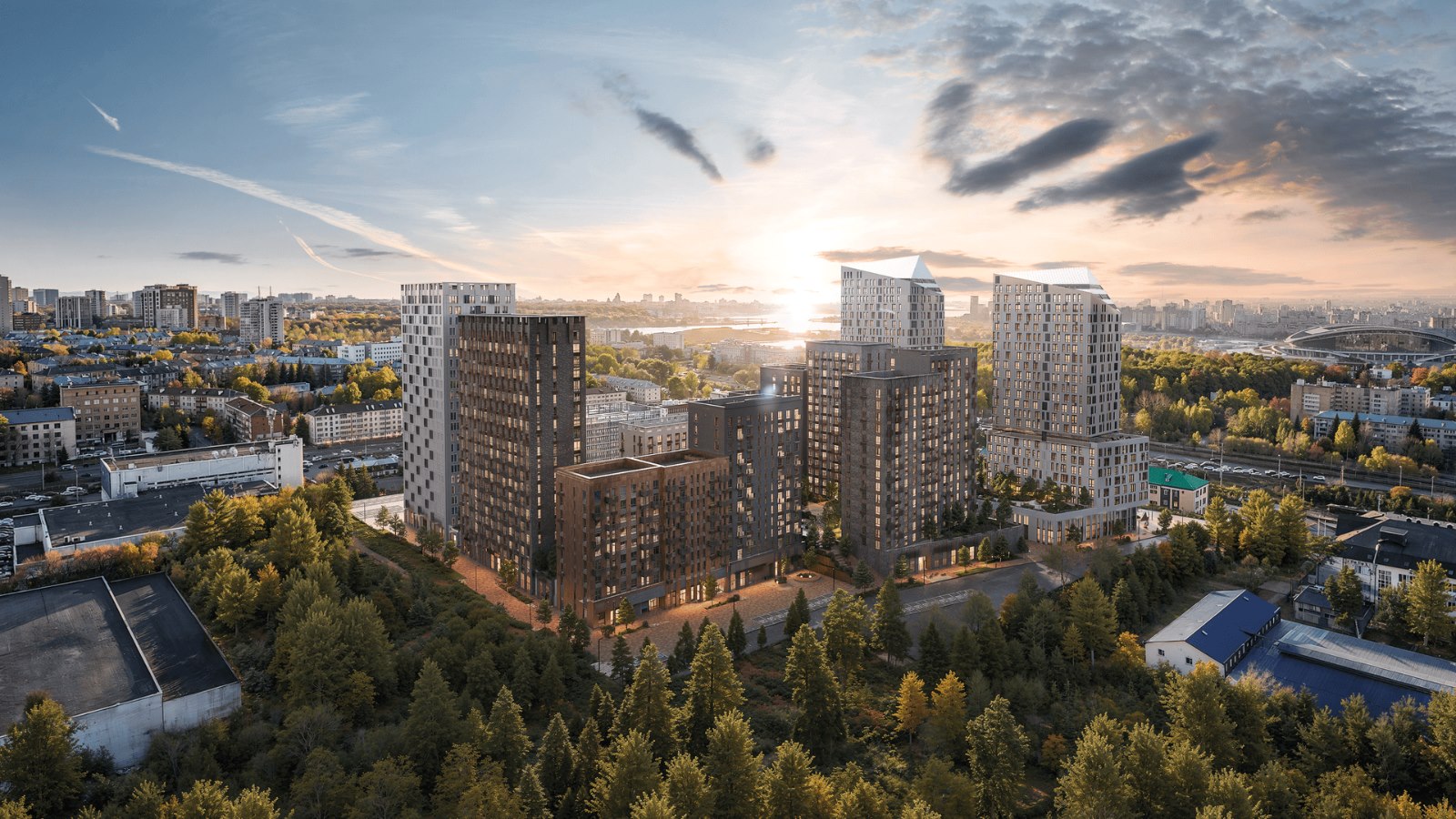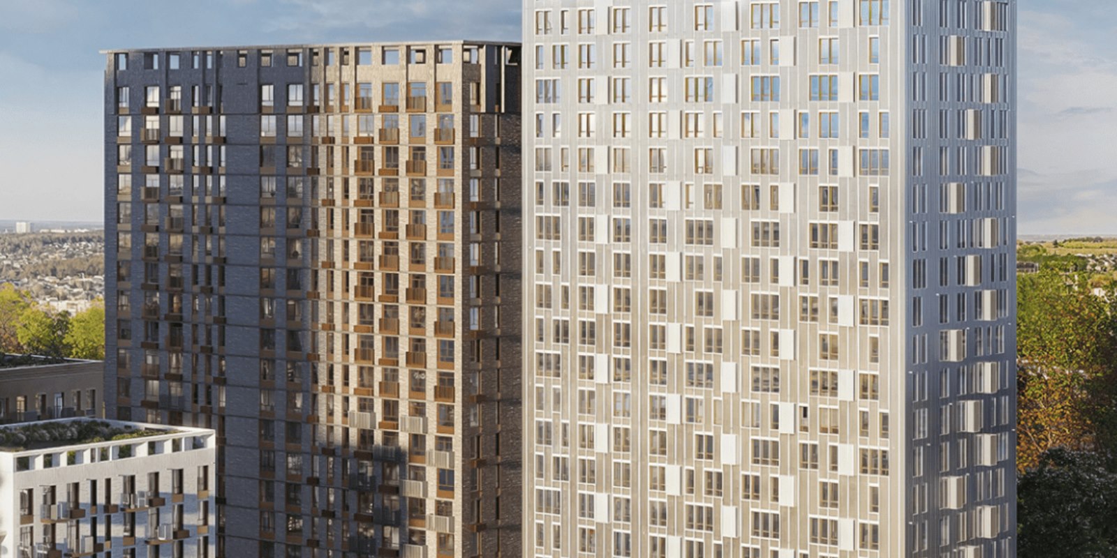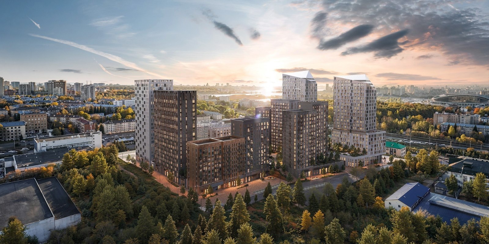 В окнах-зеркалах корпусов от 7 до 24 этажей отражается небо. Выбирайте: жить ближе к облакам или выходить на балкон, чтобы послушать, как смеются дети, возвращаясь со школы.