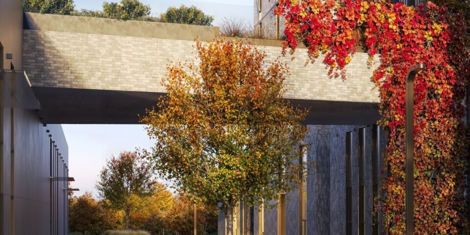Manzara Towers — это дома высотой от 7 до 24 этажей. Но нам удалось сохранить для жителей ощущение камерности благодаря небольшому количеству квартир. Два стилобата связывает между собой пешеходный мост, чтобы ходить в гости к соседям было удобнее. Частично прозрачный, он добавляет пространству воздушности и легкости. И просто создан для атмосферных фотографий.