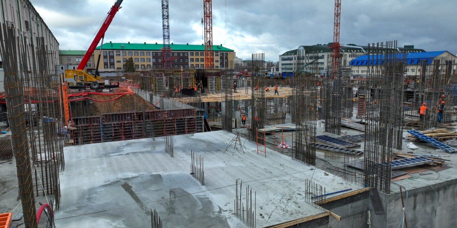 На первых этажах корпусов откроется детская поликлиника, физкультурно-оздоровительный комплекс с бассейном.