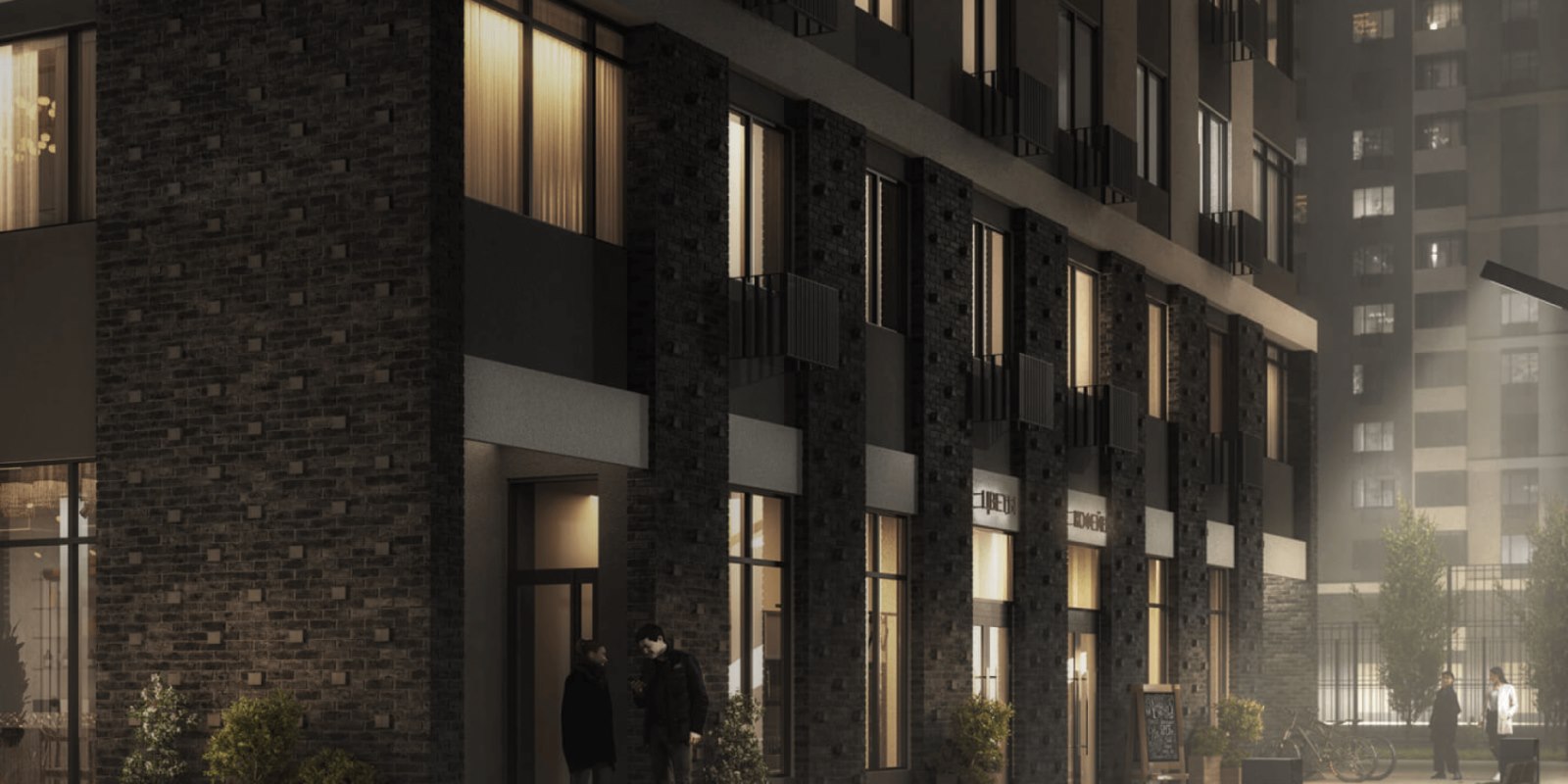 В соседних домах уже открыты кофейня, супермаркет, аптека, пекарня и магазин строительных товаров. Еще больше коммерции появится в районе после сдачи домов и строительства новых.