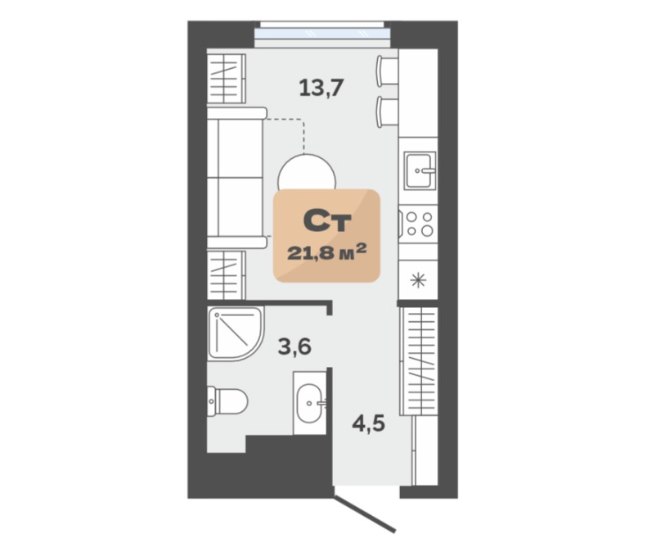 1Комната21.8 M²Общая площадь0 M²площадь кухникухня4этаж