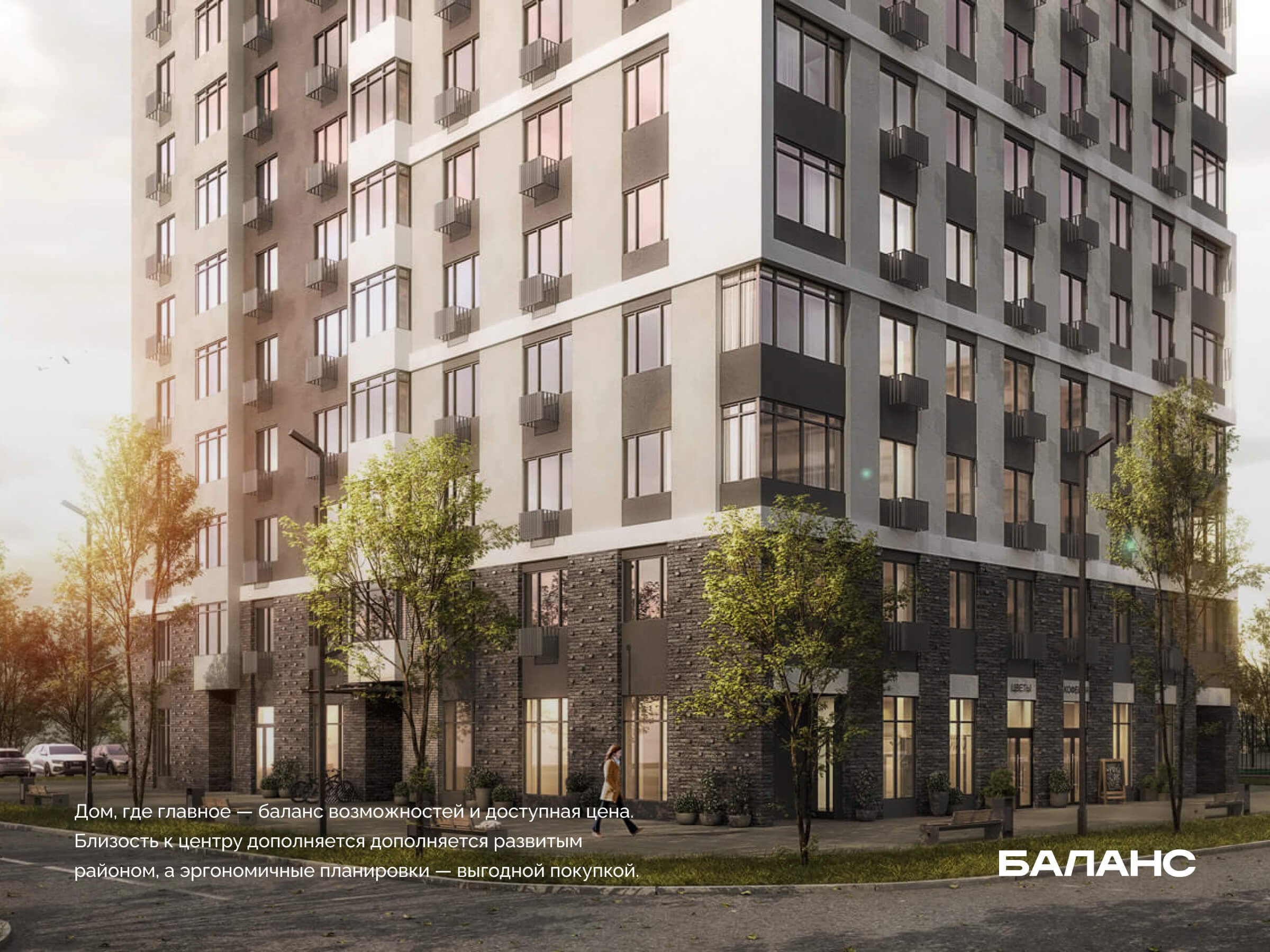 «Баланс» — это пять домов на улице Республики в 7 минутах от Гилёвской рощи. В проекте два варианта домов с планировками от студий до экстраплощадей, доступных через объединение соседних квартир.